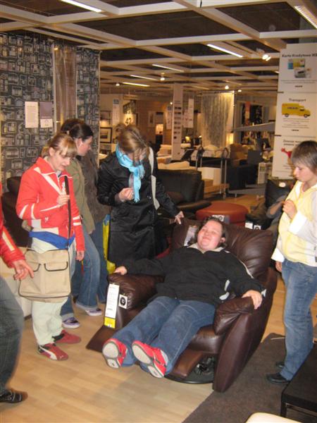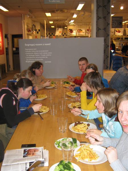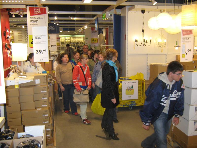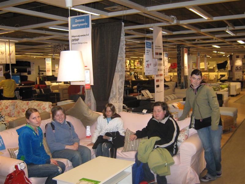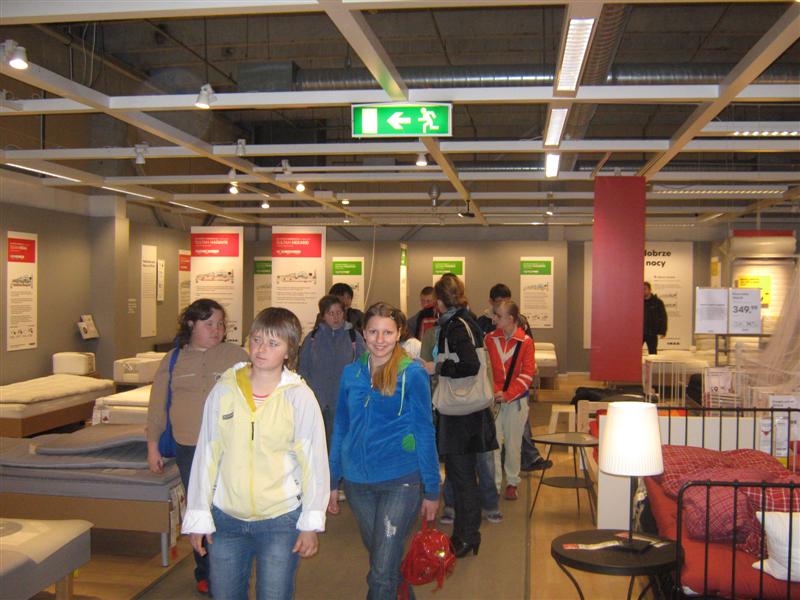 Uczniowie I i II klasy szkoły zawodowej przysposabiającej do pracy mieli okazję uczestniczyć w wycieczce do Krakowa, której plan obejmował odwiedziny w sklepie IKEA oraz seans filmowy w Multikinie. Młodzież okazała duże zainteresowanie różnymi sposobami animacji wnętrz, z uwagą oglądała szeroki asortyment wyposażenia mieszkań, ciesząc się z możliwości wypróbowania każdego produktu. Uczniowie dokonywali również samodzielnie drobnych zakupów. Po skosztowaniu tradycyjnego szwedzkiego obiadu w restauracji IKEA grupa udała się do Multikina, by obejrzeć film pt. „ Alicja w krainie czarów” w nowej jakości technologii kinowej. System projekcji 3 D dostarczył widzom niezapomnianych wrażeń, stwarzając możliwość oglądania każdej sceny w niesamowitych efektach trójwymiarowych. Mimo, że krakowski gród przywitał nas deszczem, humory wszystkim dopisywały. Opiekunami wycieczki były panie Ania i Lucynka oraz p. Zbyszek.