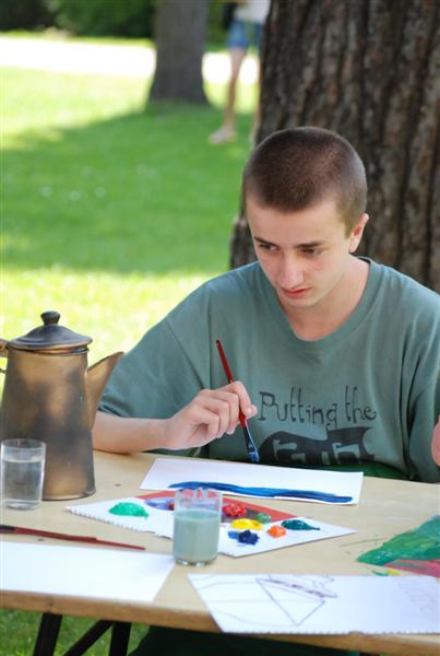 8 czerwca gościliśmy Wojciecha Kaszuba i jego ucznia, studenta edukacji artystycznej w Rzeszowie. Artyści poprowadzili w naszym parku plener malarski. Dzieci pod ich okiem próbowały w swoich pracach uchwycić światło czerwcowego południa. Powstałe w czasie zajęć barwne gwasze i akryle stały się ozdobą naszej szkolnej galerii.