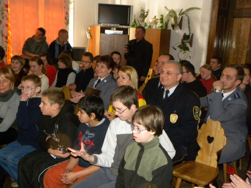 W minioną środę 15 grudnia mieliśmy ogromną przyjemność gościć w Ośrodku sportowców Olimpiad Specjalnych Polska z rejonu naszego województwa na spotkaniu „mikołajkowym”. Głównymi animatorami imprezy byli policjanci z Komendy Wojewódzkiej Policji w Krakowie zrzeszeni w organizacji „Bieg z Pochodnią Strzegących Prawa na rzecz Olimpiad Specjalnych”. Wspomagani byli przez swoich kolegów z Komendy Miejskiej Policji w Tarnowie oraz przedstawicieli tarnowskiej Straży Miejskiej. Przy tak ogromnych siłach służb mundurowych święty Mikołaj czuł się bardzo bezpiecznie i mógł przynieść ze sobą rzeczywiście cenne prezenty:))).