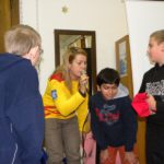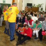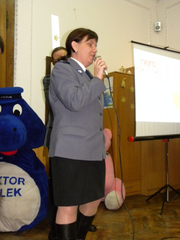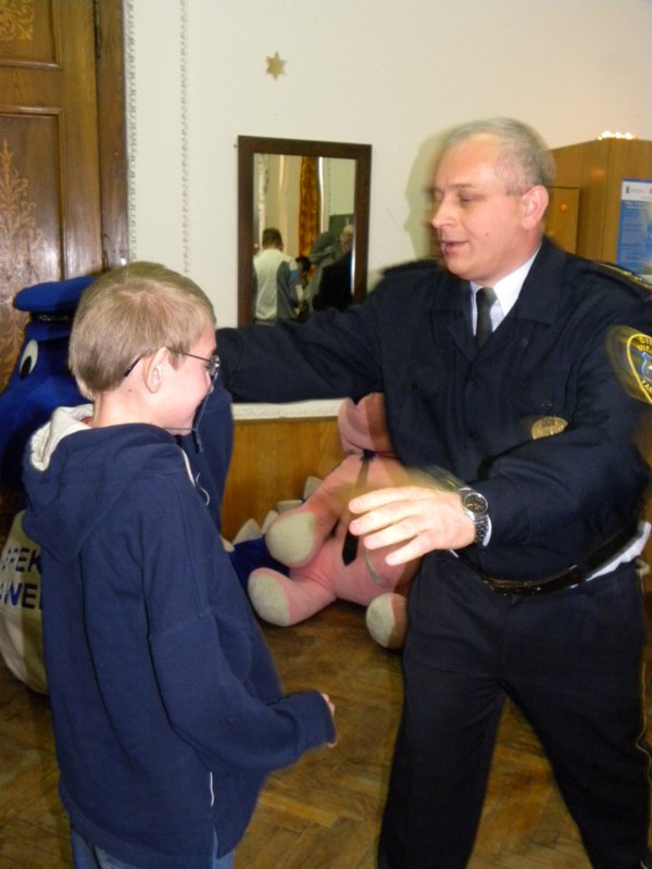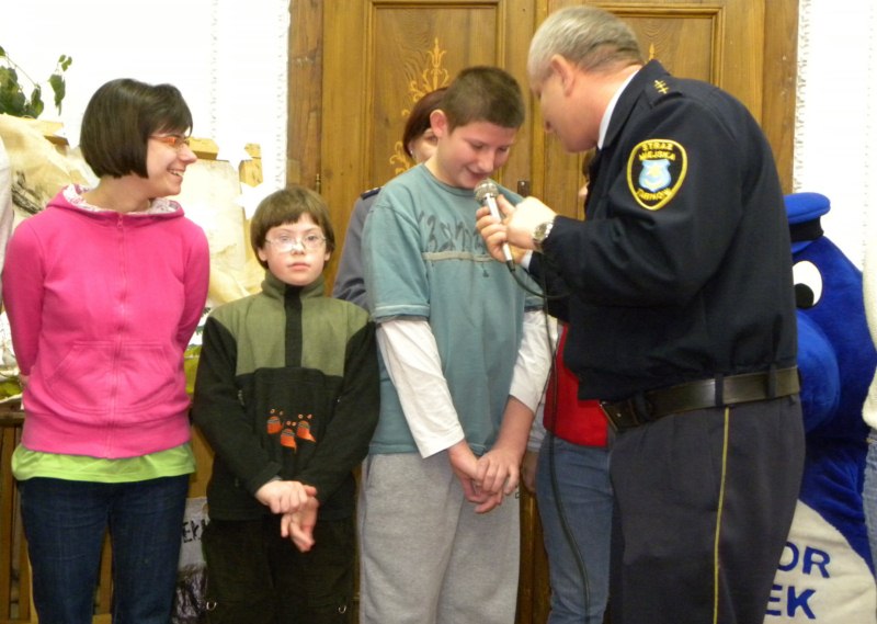 Spotkanie przebiegało w podniosłym, już prawie świątecznym nastroju. Uczniowie naszego Ośrodka zaprezentowali program kolędowy, a następnie panie i panowie policjanci zaproponowali wszystkim sportowcom niezliczone ilości konkursów, quizów i zabaw. W ich trakcie uczestnicy spotkania mogli przypomnieć sobie zasady bezpiecznego poruszania się po drogach, reguły kontaktowania się z nieznajomymi osobami itp. Edukacyjne treści były przekazywane w sposób bardzo ciekawy i atrakcyjny. Okazało się przy okazji, że wśród policjantów i strażników miejskich są osoby o ogromnym talencie pedagogicznym, potrafiące zyskać sobie sympatię młodych słuchaczy w kilka minut. Kulminacją spotkania było wręczenie prezentów od świętego Mikołaja wszystkim uczestnikom spotkania. Radości, uśmiechom nie było końca.
