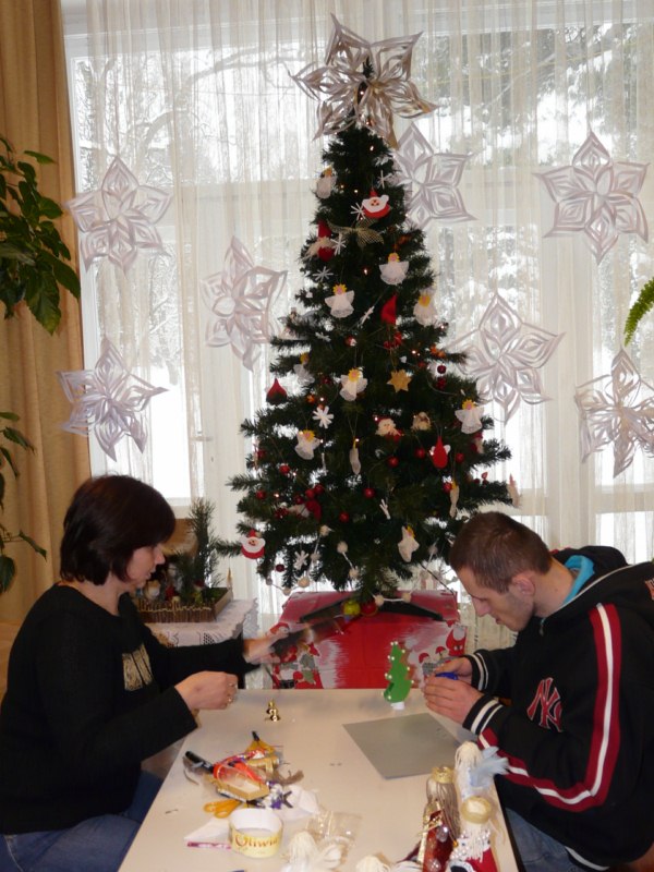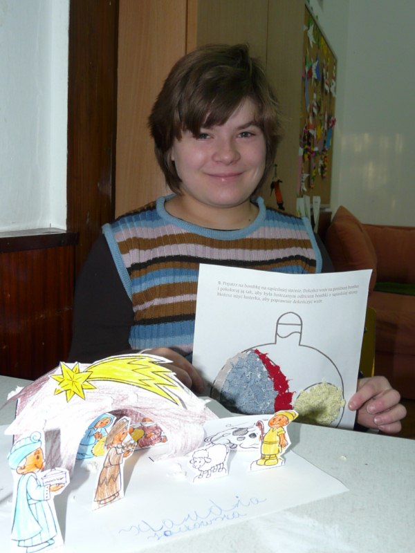 Już za kilka chwil będziemy przeżywać kolejne w naszym życiu Boże Narodzenie. Dopiero rozpoczynaliśmy rok szkolny, zachwycaliśmy się barwami jesieni, a dzisiaj za oknami króluje zima pokazując wszędzie swoje białe, inspirujące oblicze. W klasach i świetlicach przybywa świątecznych dekoracji, coraz głośniej i częściej rozbrzmiewają pastorałki i kolędy. Wokół tysiącami kolorów rozkwita choinkowy las, budząc najpiękniejsze wspomnienia z dziecinnych lat. Czuć zapach igliwia, bombki połyskują wesoło w blasku choinkowych światełek. Wszystko to wprowadza nas w wyjątkowy świąteczny nastrój. Dzieci z wielkim przejęciem ćwiczą jasełkowe teksty i kolędy, wykonują biblijne postacie do szopek, dekorują świąteczne kartki i stroiki, tworzą niezwykłe ozdoby z rozmaitych materiałów. Życie w Ośrodku toczy się codziennym rytmem, ale wszędzie czuć już atmosferę zbliżających się świąt. W przedświątecznych dniach wszyscy częściej uśmiechają się do siebie oczekując z wielkim utęsknieniem cudu wigilijnej nocy.