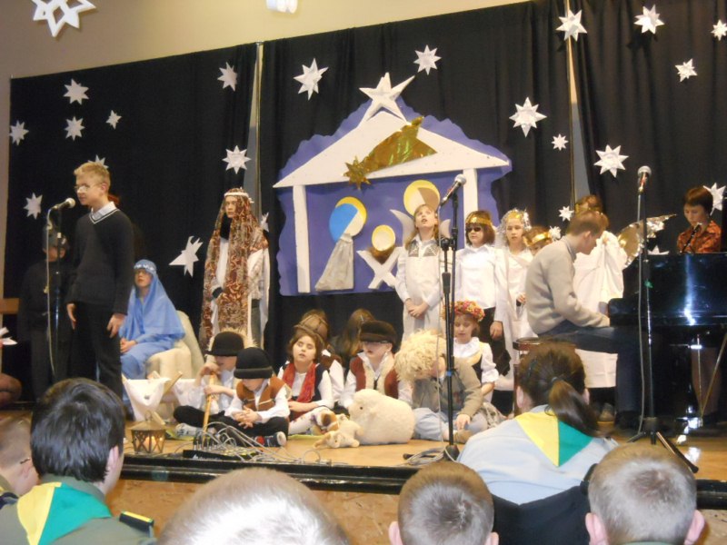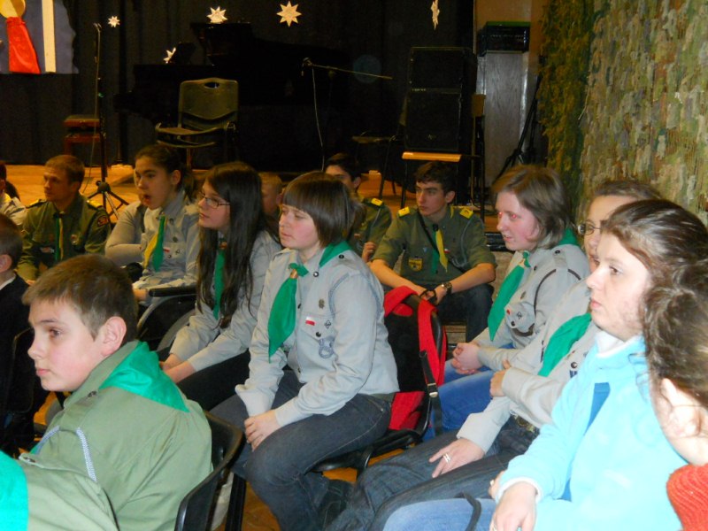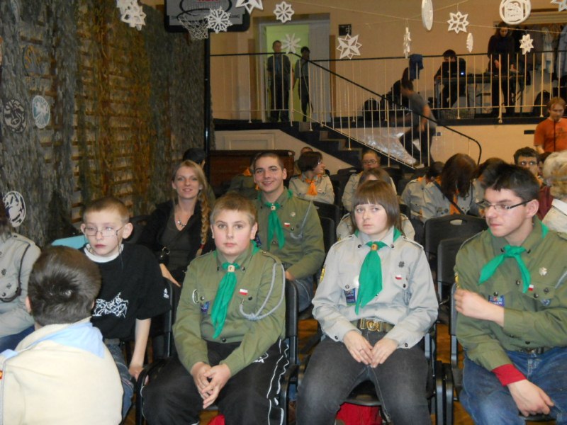 Harcerze z naszego Ośrodka wzięli udział w noworocznym, opłatkowym spotkaniu Drużyn Nieprzetartego Szlaku, które odbyło się w Specjalnym Ośrodku Szkolno – Wychowawczym dla Dzieci Niewidomych i Słabowidzących w Krakowie. W spotkaniu uczestniczył komendant ZHP Chorągwi Krakowskiej hm. Paweł Grabka. Organizatorzy spotkania – harcerze ze szczepu „Zielone Słońce” wspaniale zaprezentowali się na scenie w znakomitej aranżacji misterium Bożonarodzeniowej Nocy. Zaangażowanie i profesjonalizm niepełnosprawnych aktorów z ulicy Tynieckiej zostało nagrodzone gromkimi brawami publiczności. Szczególnie niezapomnianych wrażeń dostarczył wszystkim fortepianowy akompaniament niewidomego Michała. Podczas pierwszego w tym roku spotkania drużyn NS skauci śpiewali kolędy, łamali się opłatkiem, życząc sobie wielu niezapomnianych przygód na harcerskim nieprzetartym szlaku.