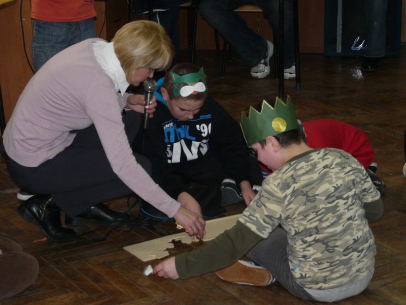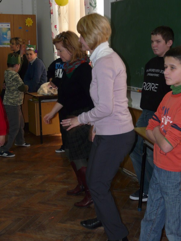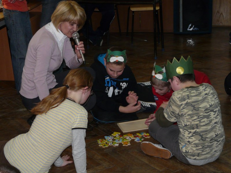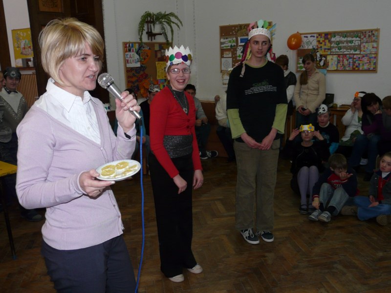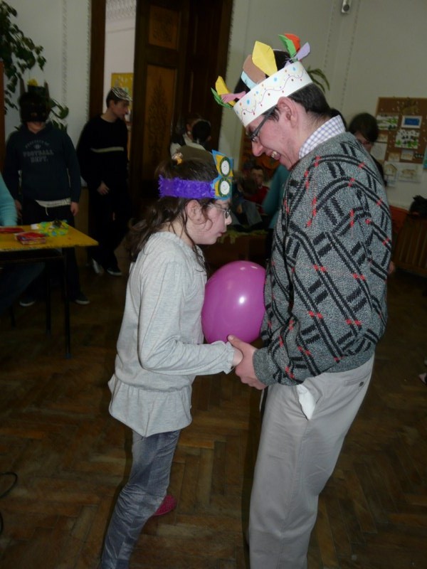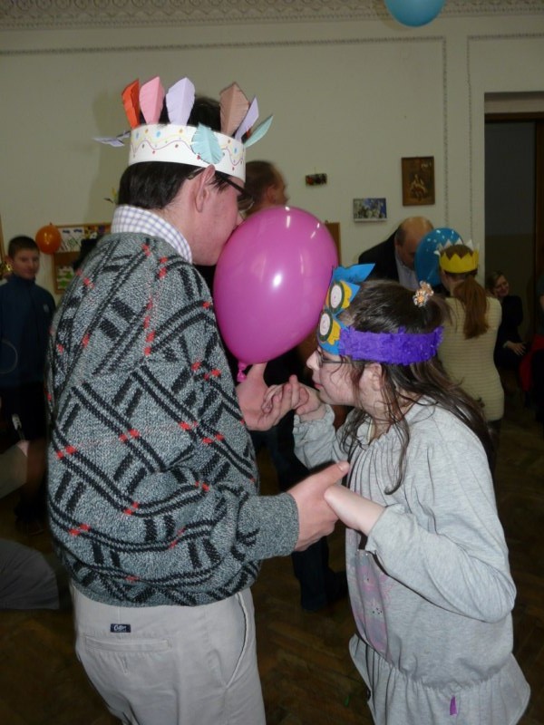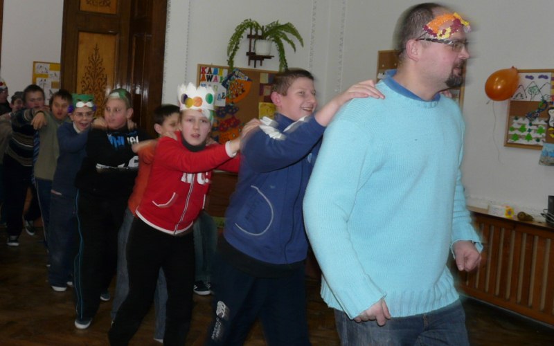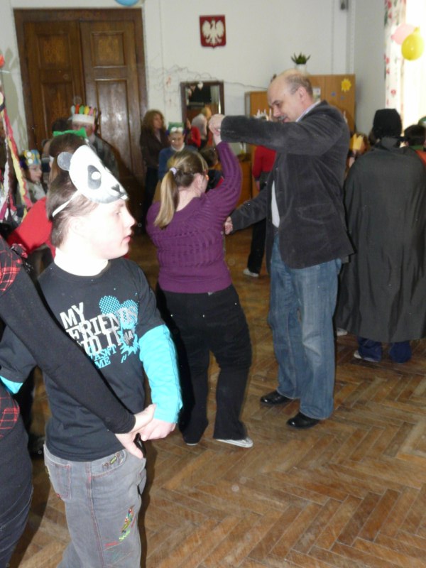 W tym roku dzieci przygotowały się do imprezy bardzo starannie – wymyśliły stroje, wykonały maski… . Dzięki temu w czasie zabawy mogliśmy spotkać tajemniczego Zorro, niebezpiecznego lwa tańczącego z małą różową świnką, królewny i królewiczów, kotki oraz całą plejadę bajkowych stworów. Uczniowie, a także wychowawcy chętnie brali udział w karnawałowych konkursach – tańcu z balonem, dmuchaniu piłeczki oraz wielu, wielu innych, wygrywając słodkie niespodzianki. Pan Wojtek wcielił się w tym dniu w rolę DJ-a i niczym prawdziwy profesjonalista serwował nam przeboje, przy których nogi same rwały się do tańca. Nie było nikogo, kto nie dałby się zaczarować i porwać radosnej atmosferze karnawału.