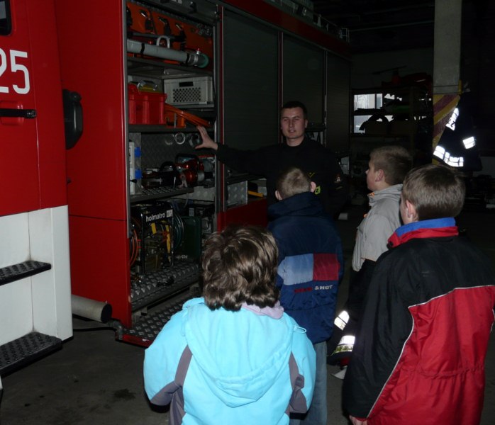 W trosce o naszych wychowanków poświęcamy wiele uwagi edukacji w obszarze bezpieczeństwa. Podejmujemy różne inicjatywy mające na celu wyposażenie podopiecznych w praktyczną wiedzę pozwalającą zapobiegać niebezpieczeństwom i minimalizować skutki zagrożeń. Wycieczka do straży pożarnej pozwoliła poznać uczestnikom pracę strażaków, a także przybliżyła ważne zagadnienia dotyczące profilaktyki pożarowej w najbliższym otoczeniu. Zajęcia miały charakter bardzo atrakcyjny. Dzieci miały okazję zasiąść za kierownicą wozu strażackiego, zapoznać się z działaniem sprzętu gaśniczego, przymierzyć specjalistyczny strój strażacki. Miła i przyjazna atmosfera przyczyniła się do kształtowania pozytywnego wizerunku strażaków, wskazując gdzie należy szukać fachowej i życzliwej pomocy w czasie zagrożenia. Uczniowie przekonali się jak trudna i ofiarna jest praca w straży pożarnej. Uświadomili sobie jak przykre konsekwencje może mieć nieostrożne obchodzenie się z ogniem. Zrozumieli jak ważne jest bezpieczne i odpowiedzialne zachowanie w szkole i w domu.