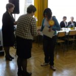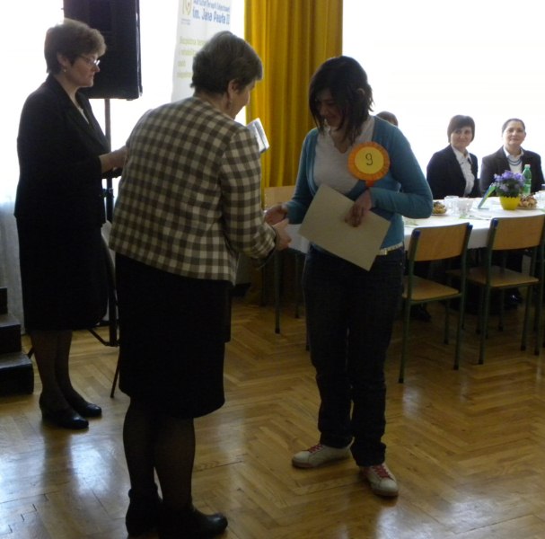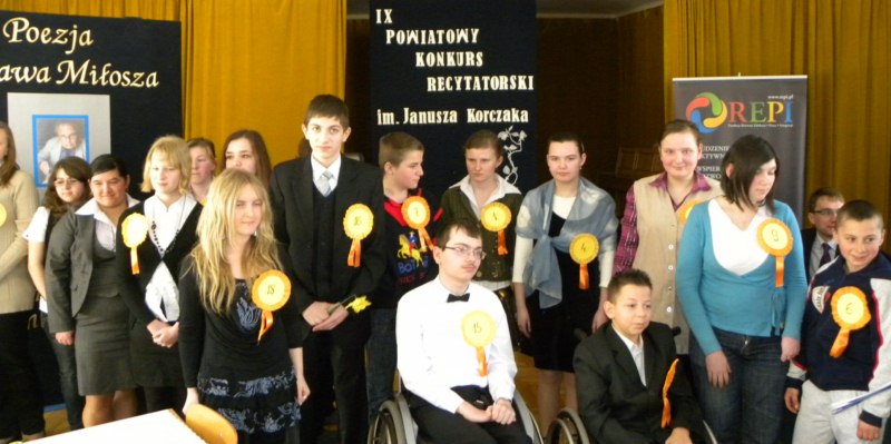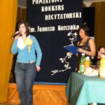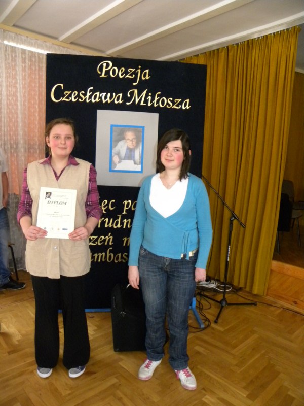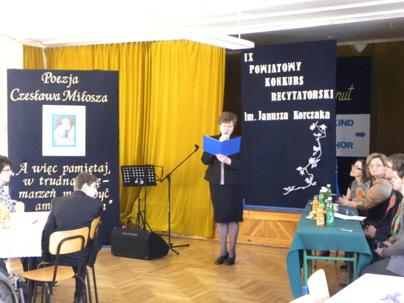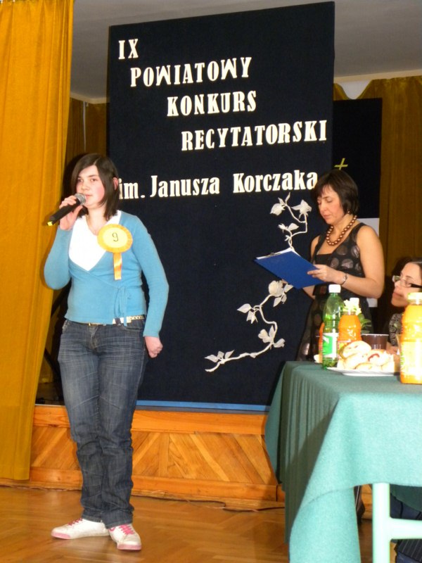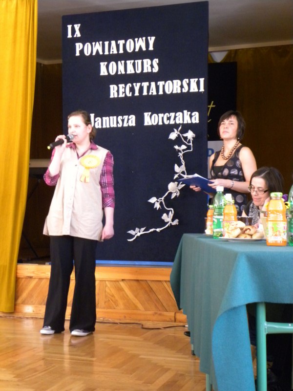 W siedzibie VII Gimnazjum z Oddziałami Integracyjnymi oraz XX Liceum Ogólnokształcącego w Tarnowie odbyła się IX edycja Powiatowego Konkursu Recytatorskiego im Janusza Korczaka. Tym razem motywem przewodnim recytatorskich zmagań była poezja Czesława Miłosza. Teksty tego zdobywcy Nagrody Nobla to trudny orzech do zgryzienia. Pełne są filozoficznych przemyśleń, skojarzeń, nawiązań do własnych przeżyć, dlatego stanowiły nie lada wyzwanie dla naszych uczennic biorących udział w konkursie. Alicja Barzyk i Iwona Wiatr przygotowały wiersze z poematu „Świat” pt. Droga i Przypowieść o maku. Bardzo dobrze zaprezentowały się w gronie kilkudziesięciu uczestników ze szkół gimnazjalnych i ponadgimnazjalnych z całego powiatu. Po wysłuchaniu wszystkich prezentacji jury udało się na naradę, a uczestnicy mogli odpocząć przy spektaklu przygotowanym przez uczniów z kółka teatralnego z VII Gimnazjum. Dzieci i ich opiekunowie niecierpliwie oczekiwali na werdykt jurorów. Gdy okazało się, że wszyscy zasłużyli na nagrody, radości nie było końca. Podczas wspólnego obiadu młodzi recytatorzy mieli okazję podzielić się między sobą wrażeniami z konkursu.