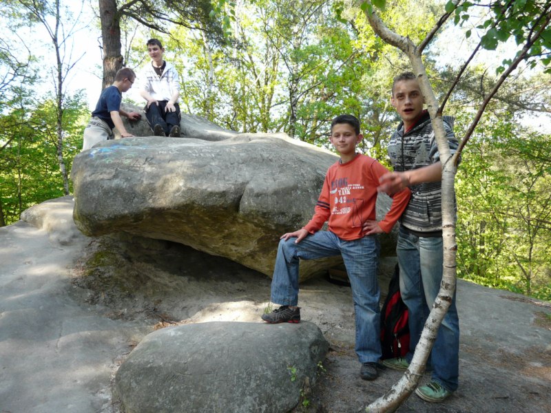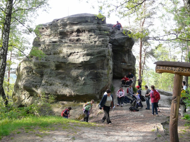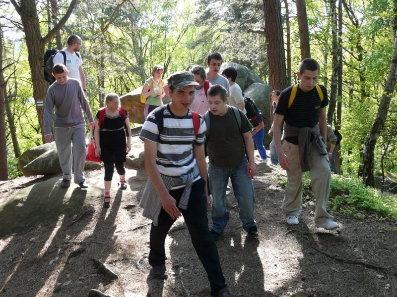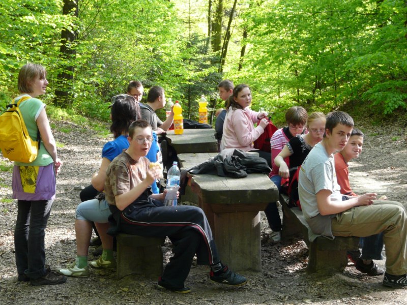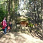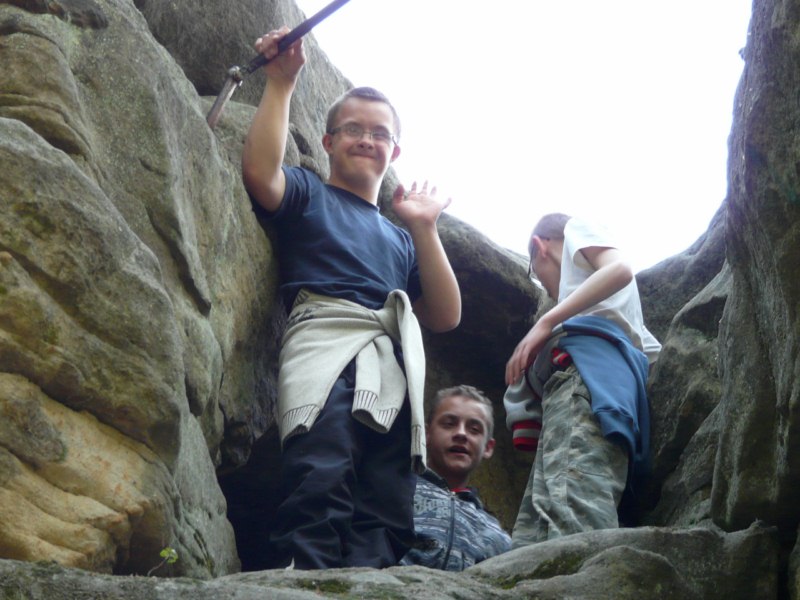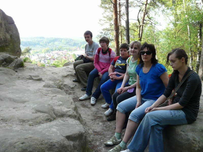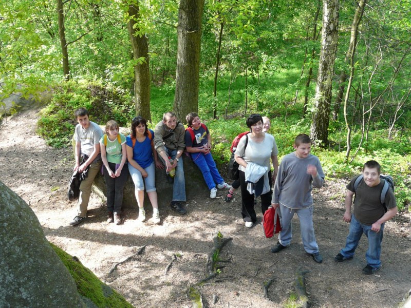 Wspaniała wiosenna pogoda sprzyja pieszym wędrówkom po najpiękniejszych miejscach naszego regionu. Takim malowniczym zakątkiem jest niewątpliwie perła Ciężkowic – Rezerwat „Skamieniałe Miasto”. Nasi podopieczni wybrali to urocze ustronie na cel pierwszej majowej wędrówki. Przebywając w niezwykle pięknym otoczeniu mieli okazję zarówno odpocząć od codziennych obowiązków, jak i podziwiać bogaty świat przyrody w urozmaiconej rzeźbie terenu. Nieopodal rzeki Białej, na stoku zalesionego wzgórza, rozrzucone formy skalne sprawiają wrażenie ruin opuszczonego miasta. Dzieci z zachwytem odkrywały kolejne skałki, których osobliwe kształty rozbudzały wyobraźnię i fantazję. Na temat „Skamieniałego Miasta” krąży wiele podań i legend, co jeszcze bardziej sprzyja baśniowym inspiracjom. Rozstępujące się skały Grunwaldu, charakterystyczny masyw Czarownicy, skalne Piramidy i tajemnicza Warownia – to tylko niektóre osobliwości tego niezwykłego miejsca. Piękno wiosennej przyrody, otoczenie skał i drzew, kojący szmer wiatru, szum kaskad i strumieni sprawiły, że nasza majowa wędrówka nabrała niepowtarzalnego uroku. Rezerwat „Skamieniałe Miasto” dostarczył naszym podopiecznym wielu wspaniałych przeżyć, zachwycając niezwykłym artyzmem natury.