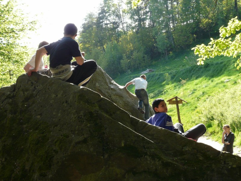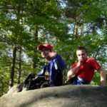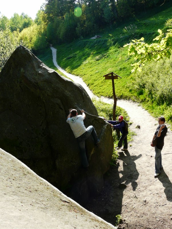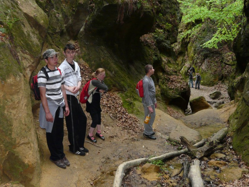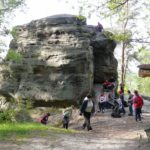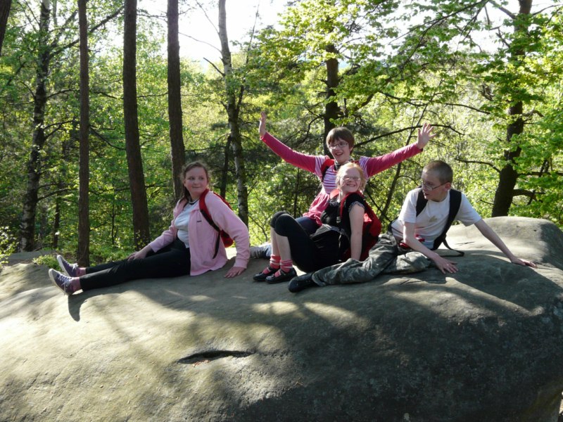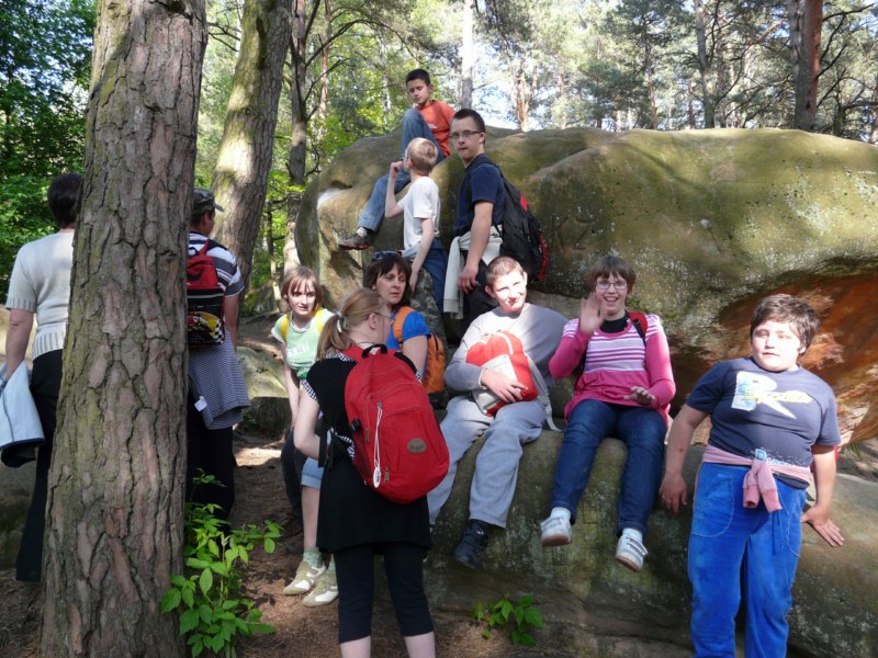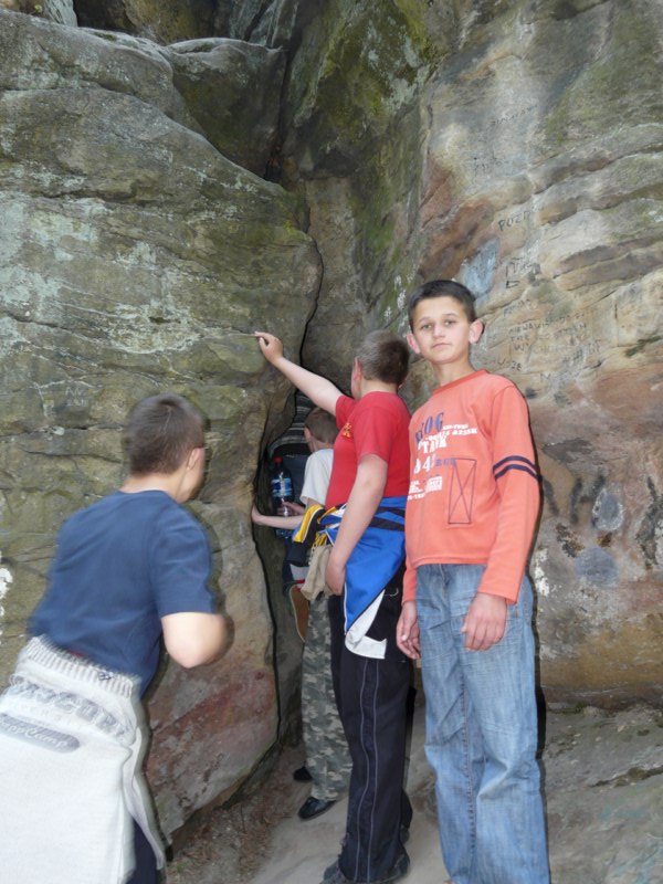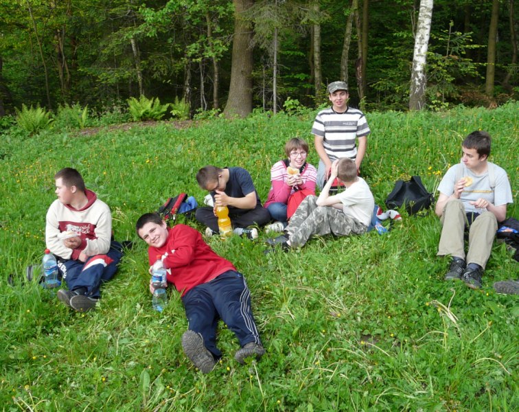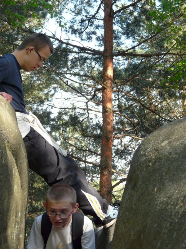 Wspaniała wiosenna pogoda sprzyja pieszym wędrówkom po najpiękniejszych miejscach naszego regionu. Takim malowniczym zakątkiem jest niewątpliwie perła Ciężkowic – Rezerwat „Skamieniałe Miasto”. Nasi podopieczni wybrali to urocze ustronie na cel pierwszej majowej wędrówki. Przebywając w niezwykle pięknym otoczeniu mieli okazję zarówno odpocząć od codziennych obowiązków, jak i podziwiać bogaty świat przyrody w urozmaiconej rzeźbie terenu. Nieopodal rzeki Białej, na stoku zalesionego wzgórza, rozrzucone formy skalne sprawiają wrażenie ruin opuszczonego miasta. Dzieci z zachwytem odkrywały kolejne skałki, których osobliwe kształty rozbudzały wyobraźnię i fantazję. Na temat „Skamieniałego Miasta” krąży wiele podań i legend, co jeszcze bardziej sprzyja baśniowym inspiracjom. Rozstępujące się skały Grunwaldu, charakterystyczny masyw Czarownicy, skalne Piramidy i tajemnicza Warownia – to tylko niektóre osobliwości tego niezwykłego miejsca. Piękno wiosennej przyrody, otoczenie skał i drzew, kojący szmer wiatru, szum kaskad i strumieni sprawiły, że nasza majowa wędrówka nabrała niepowtarzalnego uroku. Rezerwat „Skamieniałe Miasto” dostarczył naszym podopiecznym wielu wspaniałych przeżyć, zachwycając niezwykłym artyzmem natury.