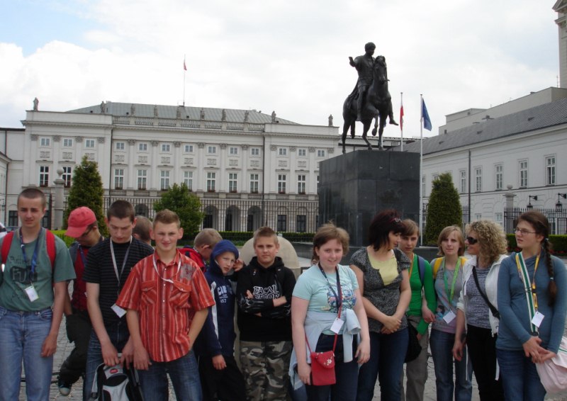Kolejny dzień rozpoczęliśmy od zwiedzania Starówki, gdzie podziwialiśmy Zamek Królewski, Katedrę Jana Chrzciciela, Barbakan i kamieniczki w rynku. Następnie wyruszyliśmy pod Pałac Prezydencki oraz pod Grób Nieznanego Żołnierza, gdzie obserwowaliśmy zmianę posterunku i składanie wieńca przez delegację z Austrii. W drodze powrotnej wstąpiliśmy na pyszne lody do kawiarni, by po chwili wytchnienia zatrzymać się w zadumie na Cmentarzu Powązkowskim, gdzie oddaliśmy hołd ofiarom katastrofy pod Smoleńskiem.