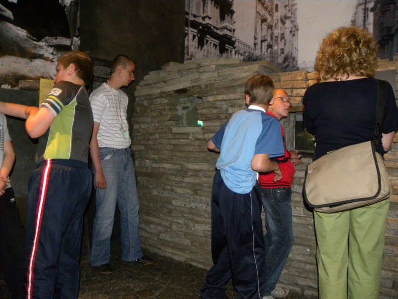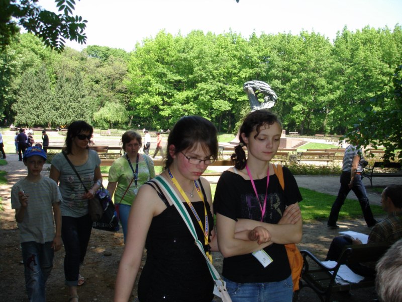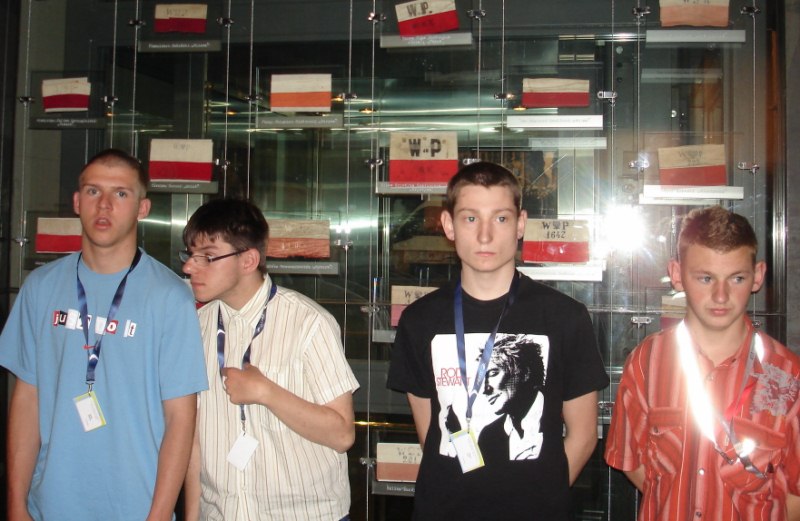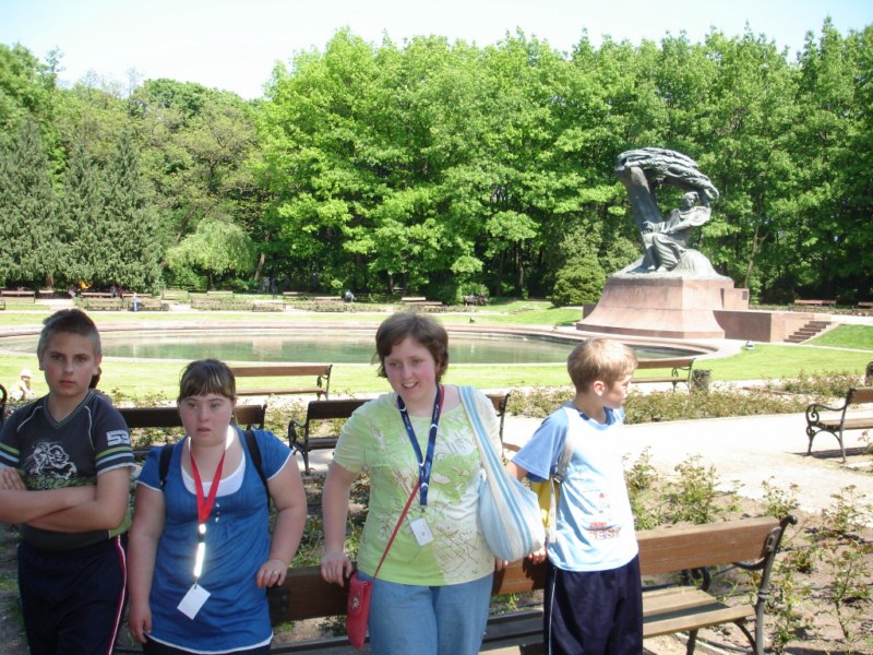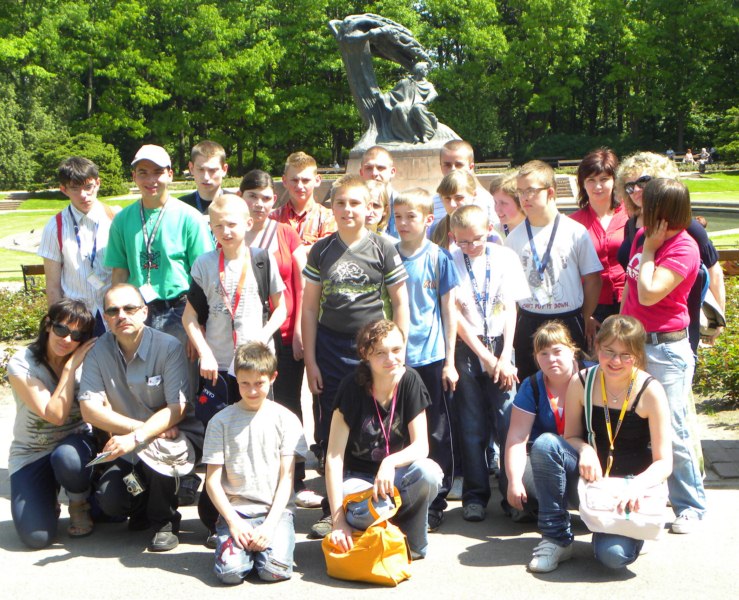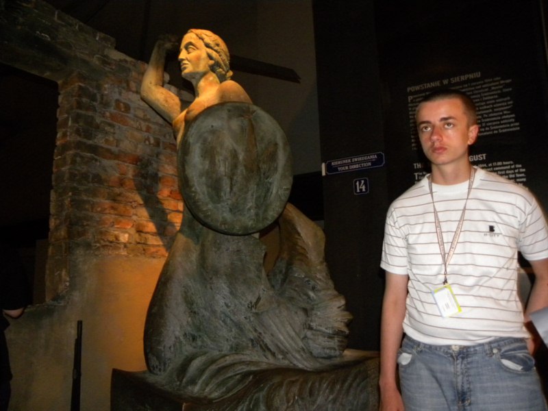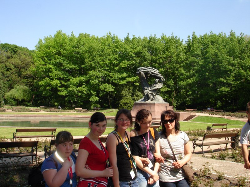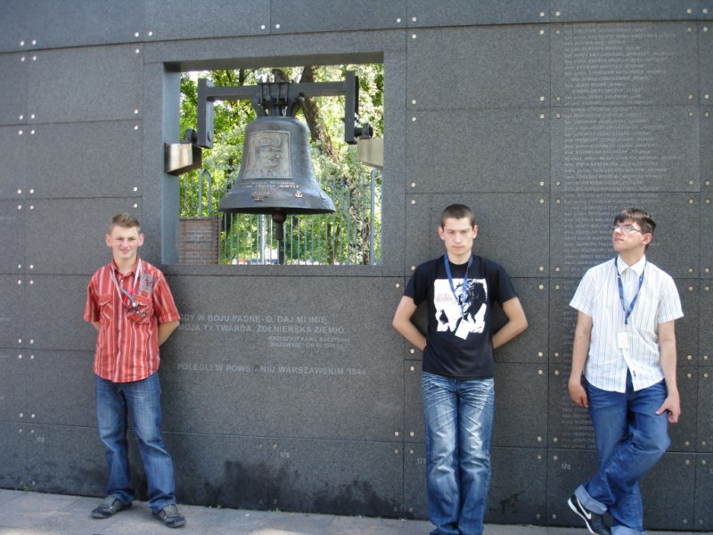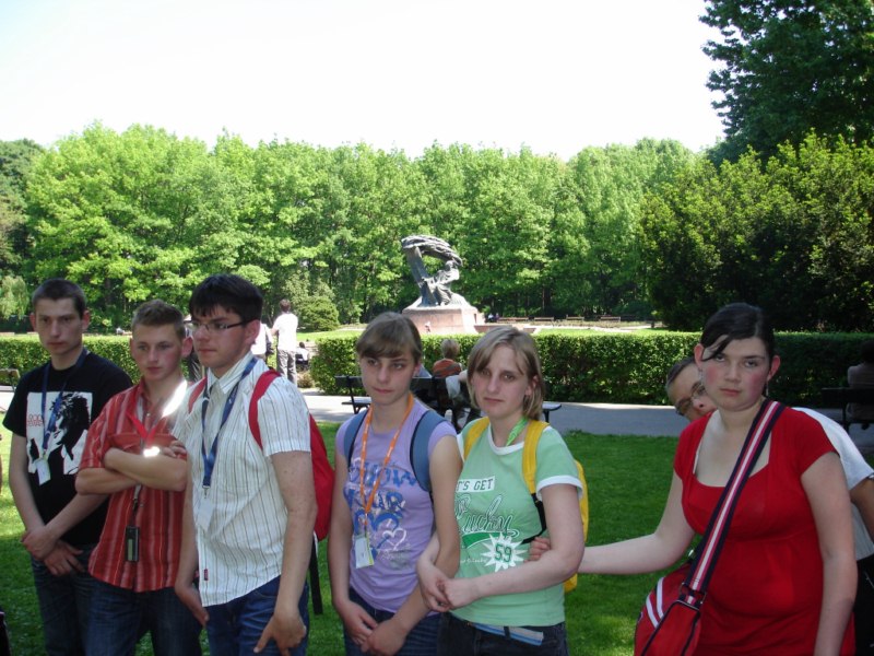Ostatni dzień pobytu w stolicy powitał nas pięknym wschodem słońca. Rano udaliśmy się do Muzeum Powstania Warszawskiego, które na kilka godzin przeniosło nas w trudny czas okupacji. Ze zdumieniem wsłuchiwaliśmy się w głosy powstańców, dotykaliśmy fragmentów murów Getta, przemieszczaliśmy się kanałami, w których ukrywali się powstańcy. Mieliśmy także okazję zobaczyć opaski noszone na ramionach walczących oraz fotografie z tamtego okresu. Najwięcej emocji wzbudziła projekcja filmu pt. „ Miasto Ruin” obejrzana w technice 3D, przedstawiająca niesamowity obraz zniszczonej działaniami wojennymi stolicy. Przed wyjazdem zatrzymaliśmy się jeszcze w Parku Łazienkowskim, by ochłonąć nieco pod pomnikiem F. Chopina.