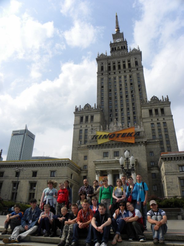 Do Śródmieścia dotarliśmy metrem. Dla uczniów było to zupełnie nowe doświadczenie. W krótkim czasie znaleźliśmy się w okolicy Pałacu Kultury i Nauki. Windą wyjechaliśmy na XXX piętro i tam z tarasu widokowego podziwialiśmy panoramę Warszawy. Po dniu pełnym wrażeń, zmęczeni, ale zadowoleni wróciliśmy do spokojnego Sulejówka.