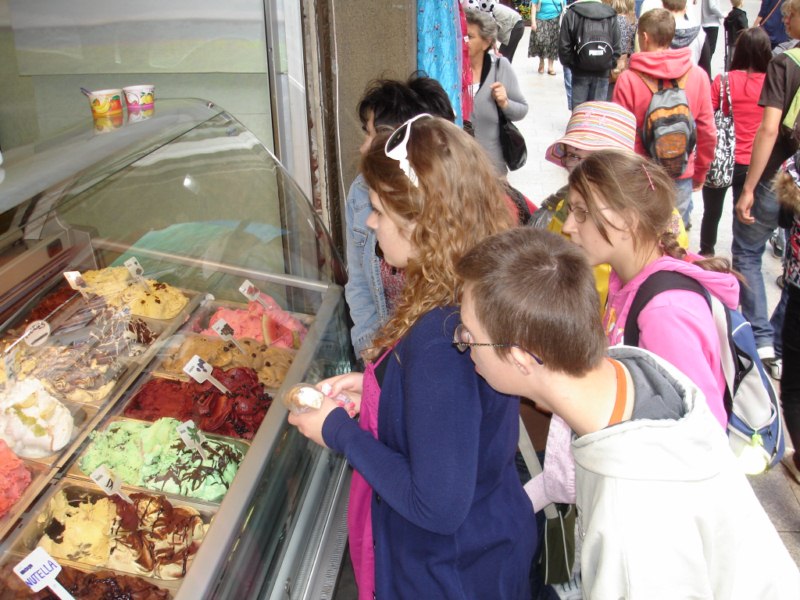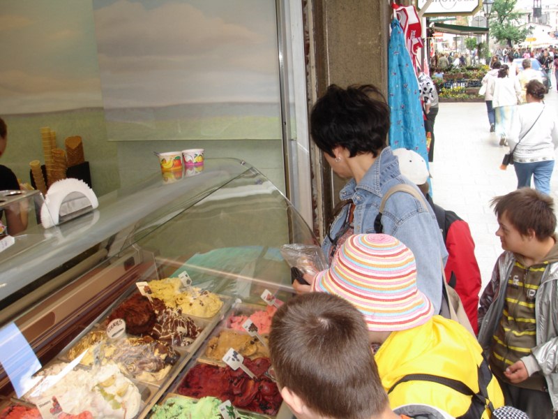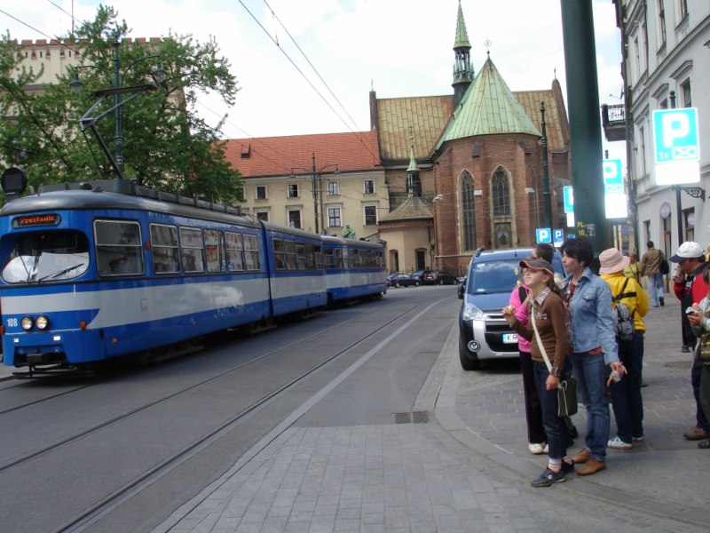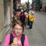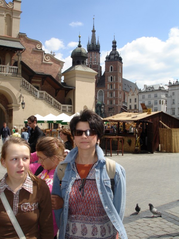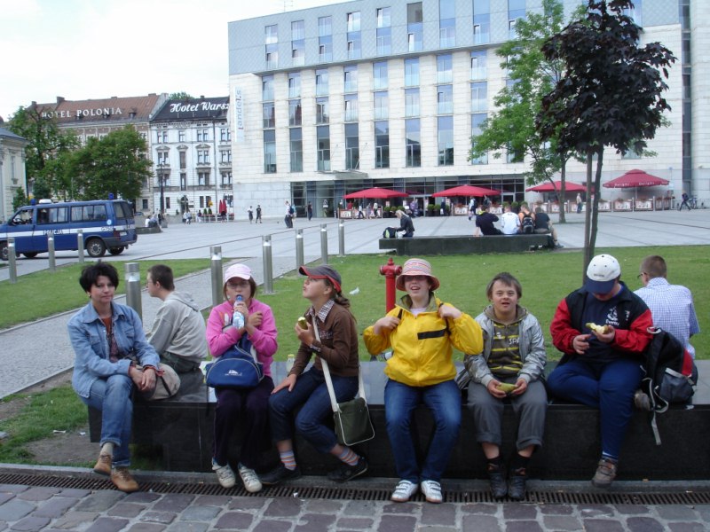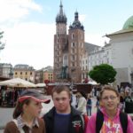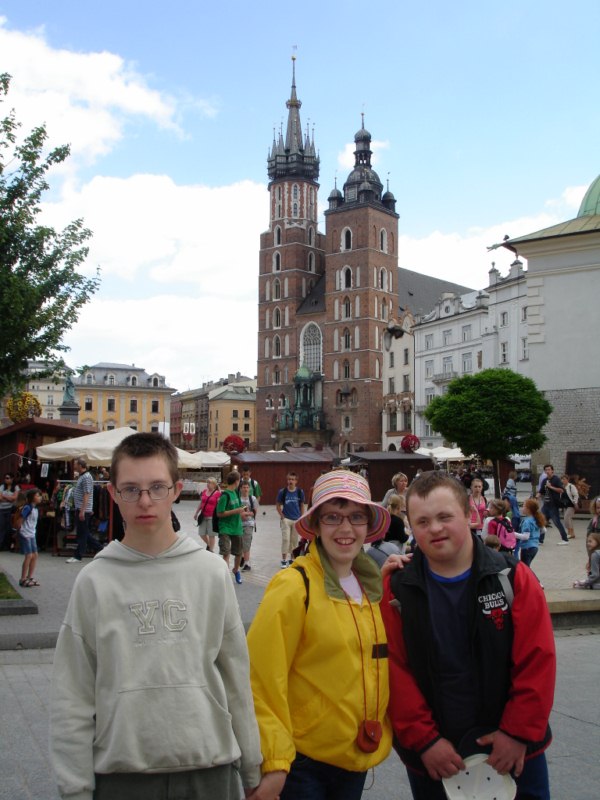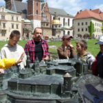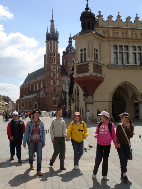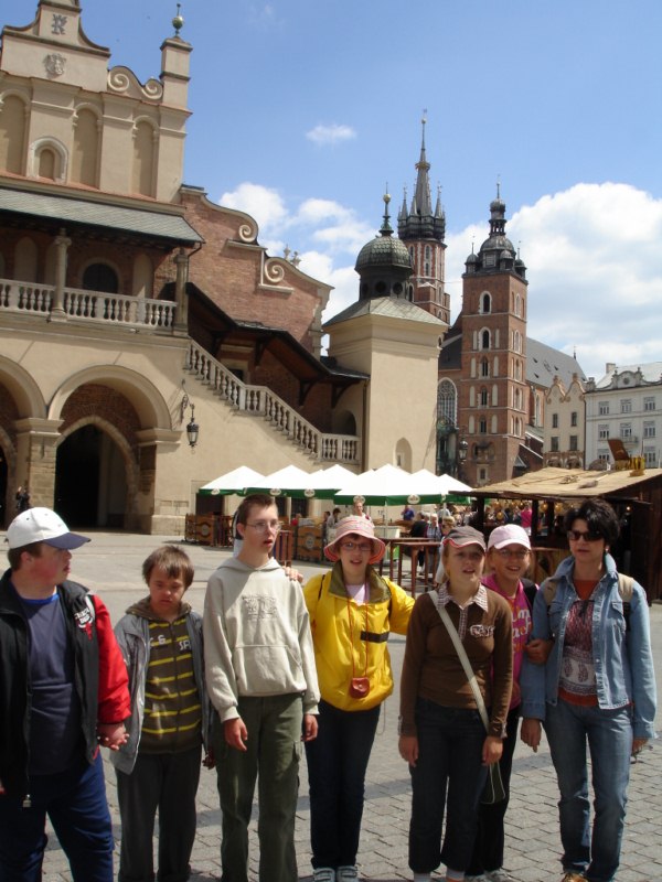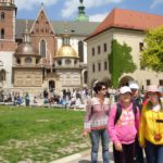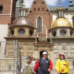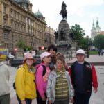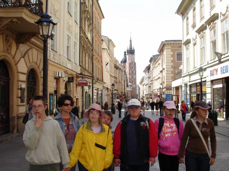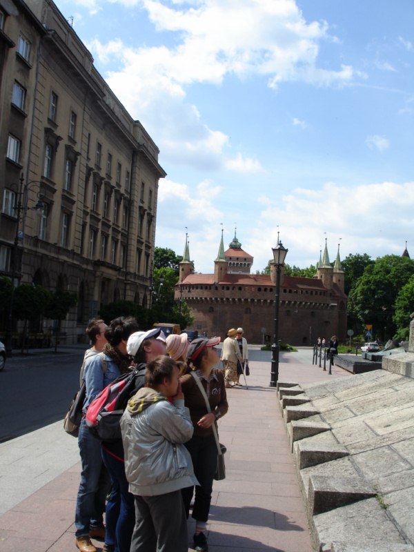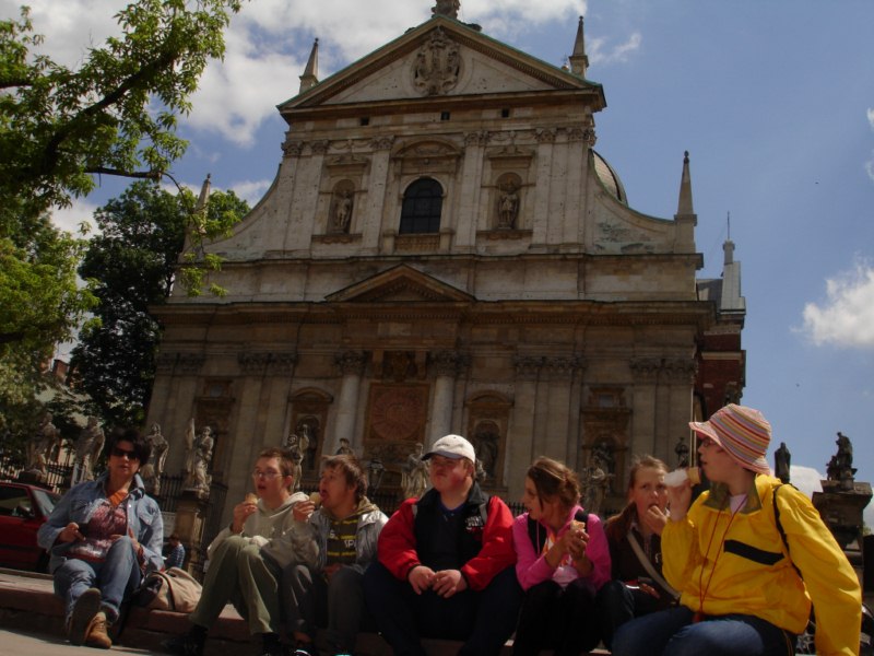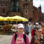 Zwiedzanie rozpoczęliśmy od kościoła św. Floriana przy Placu Matejki. Następnie zatrzymaliśmy się pod pomnikiem Grunwaldzkim. Przechodząc obok Barbakanu i resztek dawnych fortyfikacji miejskich, poprzez główną bramę wjazdową wkroczyliśmy w obręb Starego Miasta. Dalej ulicą Floriańską udaliśmy się na największy plac średniowiecznej Europy – Rynek. Tutaj zwiedzaliśmy Kościół Mariacki, Sukiennice, pomnik Adama Mickiewicza. Mieliśmy możliwość wysłuchania hejnału z wieży kościoła Mariackiego. Dużą atrakcją i zainteresowaniem wśród dzieci cieszyły się dorożki konne. Kontynuując spacer ulicą Grodzką podziwialiśmy kościół św. Piotra i Pawła z postaciami Apostołów na postumentach oraz pomnik ks. Piotra Skargi. Przyszedł także czas na chwilę odpoczynku i na coś co zaczyna się na literkę ,,L” jak lody. Każdy miał możliwość wybrać swój ulubiony smak: truskawka, czekolada, marakuja, pomarańcz itp.. Schłodzeni niebiańskimi smakami przeszliśmy ulicą Kanoniczną na Wzgórze Wawelskie do najwspanialszej rezydencji renesansowej w Europie. W drodze powrotnej był czas na zakup pamiątek i posiłek w McDonald.