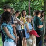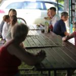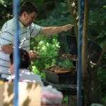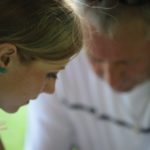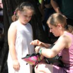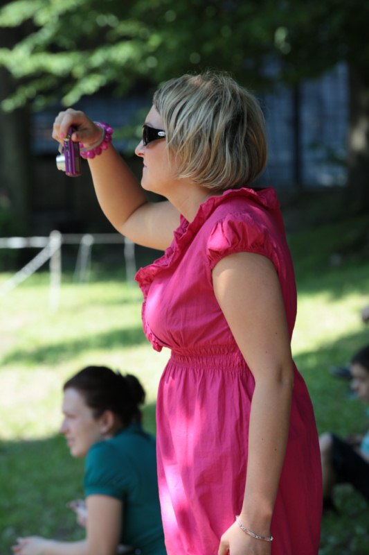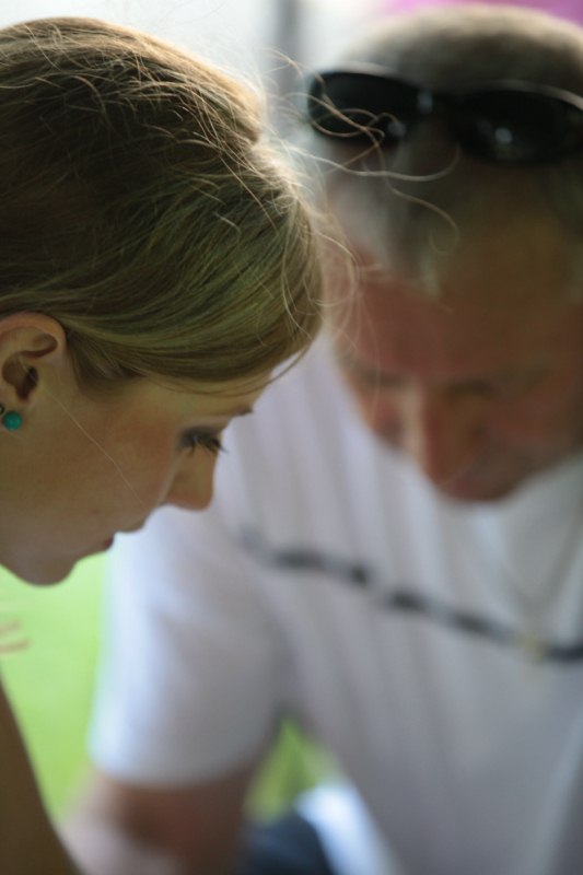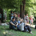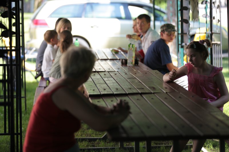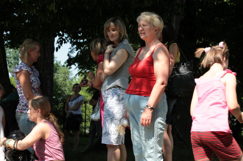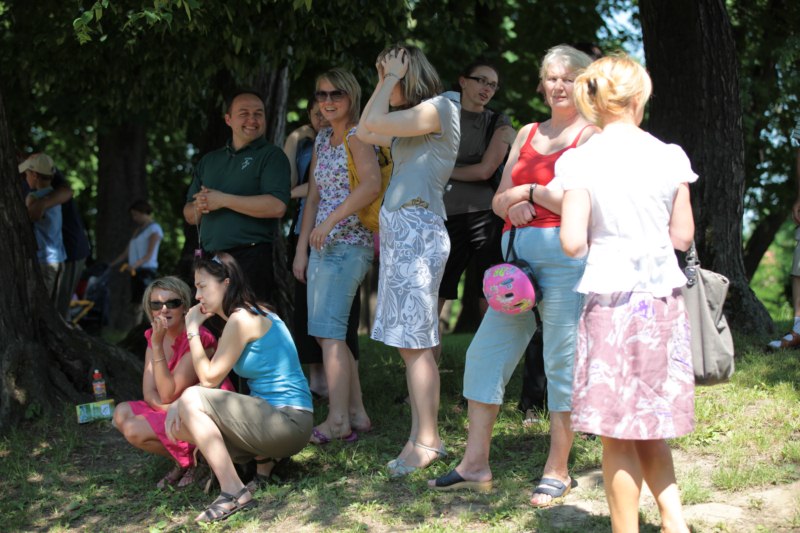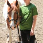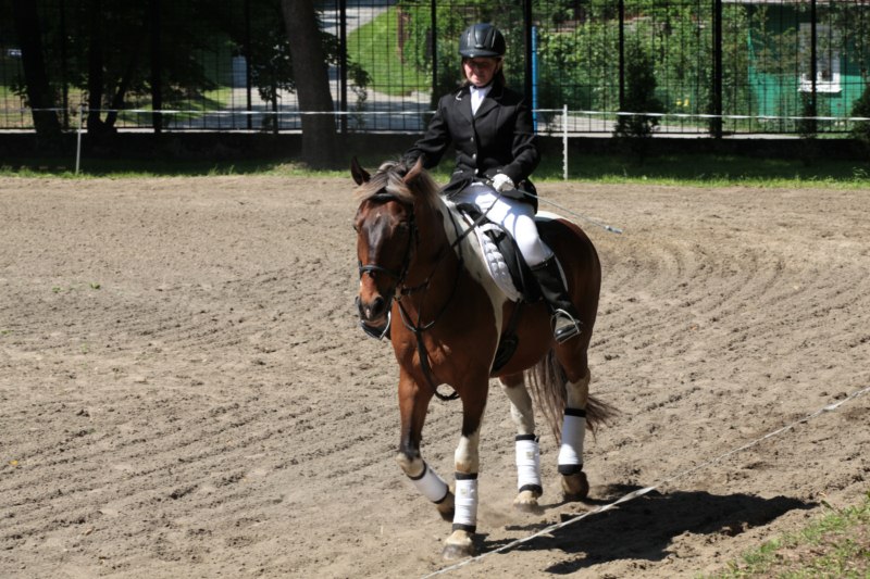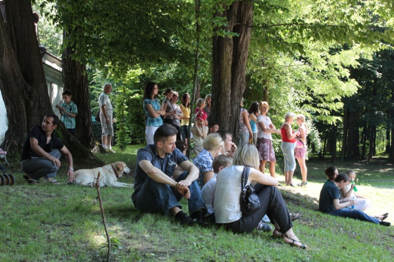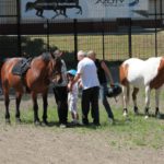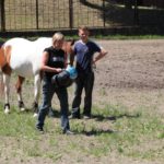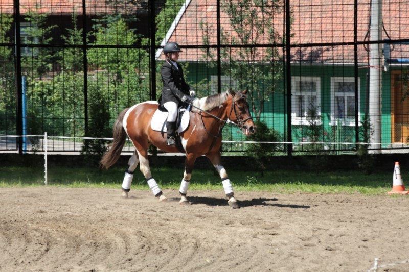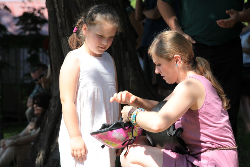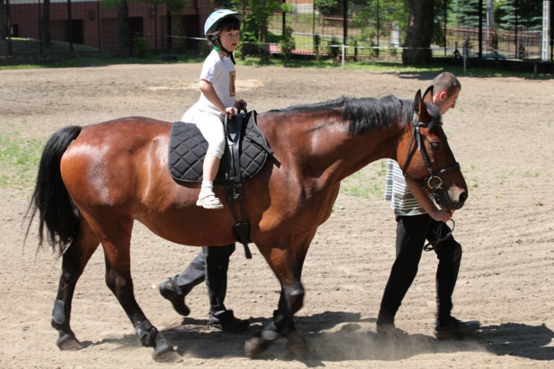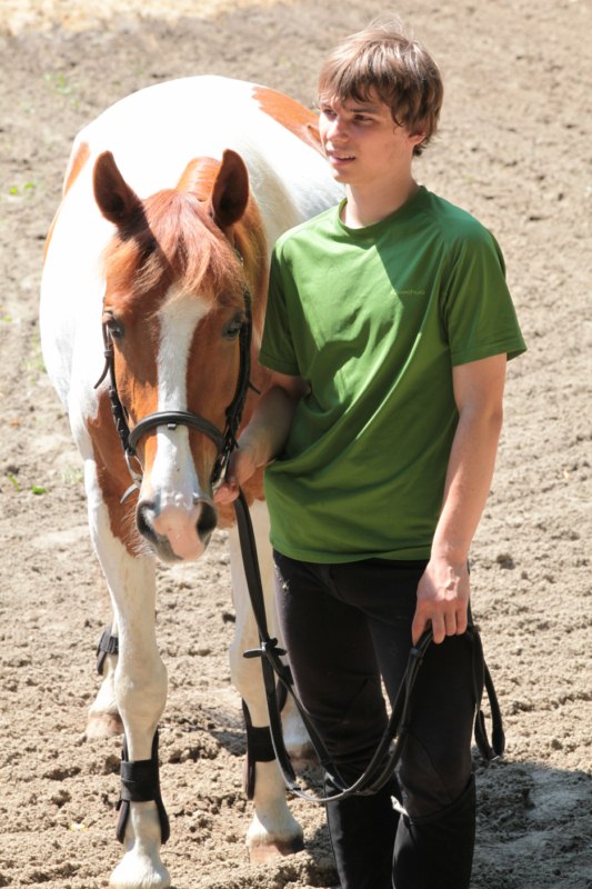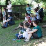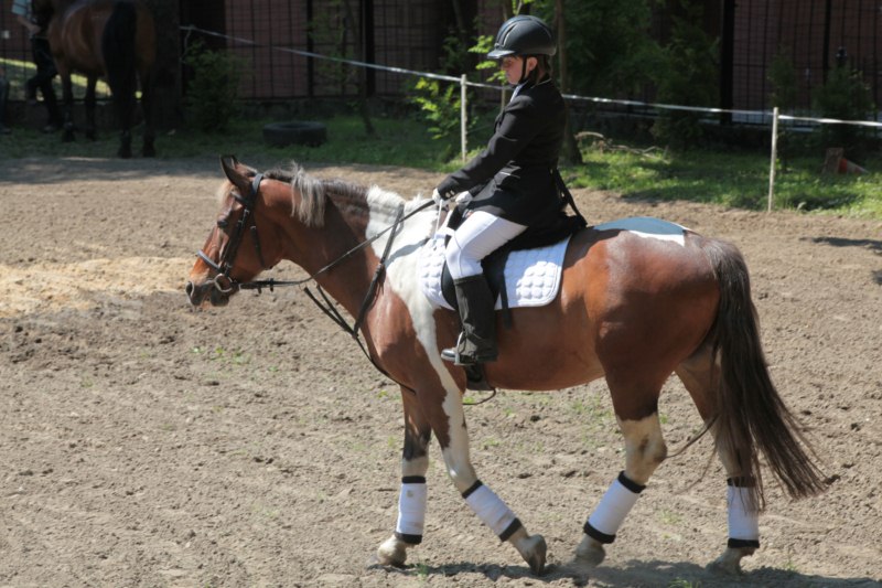 Po części teoretycznej nastąpiła chwila przerwy na kawę i lekki posiłek. Do dyspozycji zaproszonych gości nasze panie kucharki oddały fantastycznie zastawiony stół szwedzki z dużym wyborem sałatek i przekąsek. Część warsztatowa rozpoczęła się od prezentacji form i metod pracy z dzieckiem z Zespołem Downa. Jako uroczy podmiot działań terapeutycznych wystąpiła pełna werwy i zapału Madzia – od przyszłego roku szkolnego uczennica Ośrodka. Następnie nasz gość z Krakowa – Jan Krupiński poprowadził wzorcowe zajęcia z dorosłą już Joasią, która cierpi na porażenie mózgowe. Po zajęciach, które pokazywały szczegółowo wszystkie elementy fizjoterapii na koniu – modelu neurofizjologicznego – nastąpił wyczerpujący komentarz. P. Maciej Witek i p. Michał Stach zademonstrowali elementy psychopedagogicznej jazdy konnej z dwoma chłopcami z autyzmem, zarówno Mateusz jak i Emanuel fantastycznie się spisali w roli modeli. Następnie jeszcze kilkoro naszych podopiecznych miało okazję przejechać się chwilkę na grzbiecie konia na oklep. Na podsumowanie części warsztatowej uczennica klasy przysposabiającej do pracy zawodowej i jednocześnie zawodniczka Olimpiad Specjalnych – Karolina Marcinek, zaprezentowała przejazd konkursowy w konkurencji ujeżdżenie. Na koniec dnia pełnego wrażeń, z zaspokojonym głodem wiedzy, goście udali się na nieoficjalną część zmykającą warsztaty- grilla, gdzie w miłej atmosferze przebiegały swobodne rozmowy i dyskusje podsumowujące wydarzenia Dnia Hipoterapii. Do dyspozycji gości ostała oddana bryczka, można było skorzystać z przejażdżek po parku. W międzyczasie odbywały się rozmowy i konsultacje z rodzicami, specjaliści dzielili się swoją wiedzą, odpowiadali na pytania, rozwiewali wątpliwości.