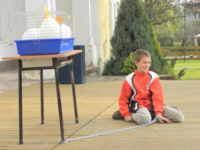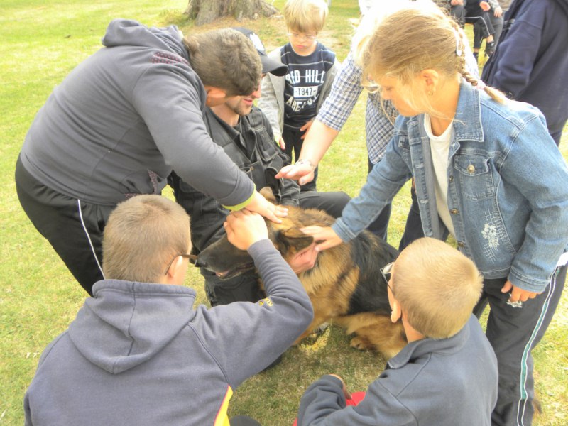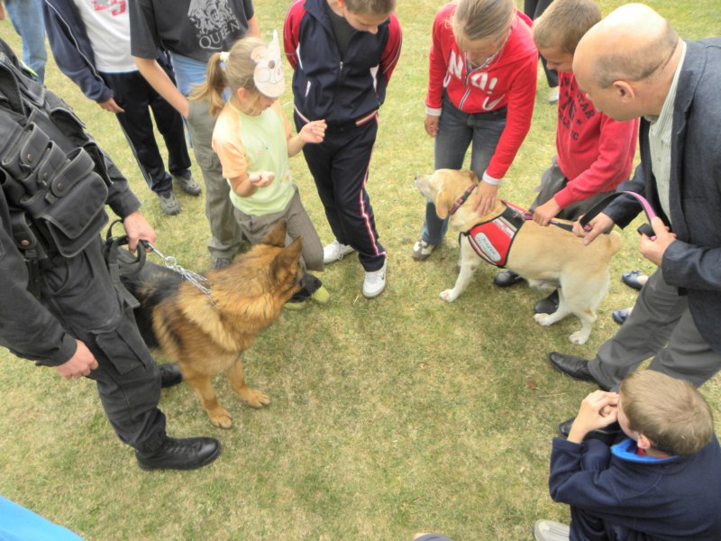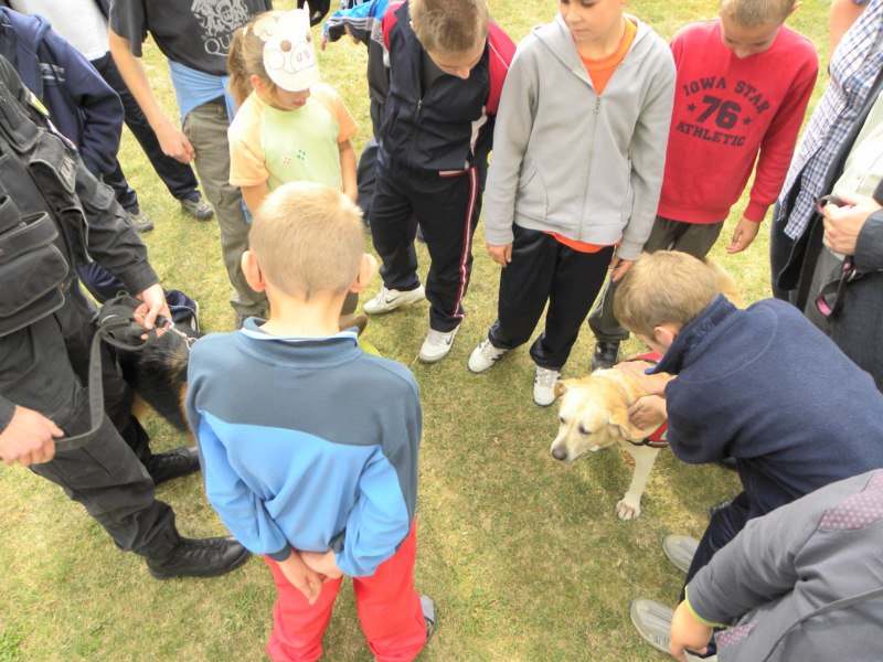 Światowy Dzień Zwierząt stał się okazją, aby podziękować naszym zwierzęcym terapeutom za ich dobroczynny wpływ na dzieci, jak również uświadomić wszystkim, jak ważne jest humanitarne traktowanie naszych „braci mniejszych”. W mitingu wzięli udział wszyscy uczniowie naszego Ośrodka. Dzięki konkursom i różnym zabawom mogli nauczyć się jak rozpoznawać oznaczenia jajek z chowu klatkowego i wolnego wybiegu, na własnej skórze przekonali się, jak czuje się pies przywiązany przez całe życie do łańcucha, poznawali dźwięki wydawane przez różne zwierzęta oraz smaki odzwierzęcych produktów. Pani Joanna Stach – Andreasik opowiedziała dzieciom, na czym polega praca psich terapeutów, natomiast goście specjalni – funkcjonariusze policji wraz z psem o imieniu Nero zaprezentowali typowe szkolenie psa policyjnego oraz cierpliwie odpowiadali na wszystkie nurtujące nas pytania.