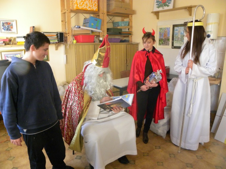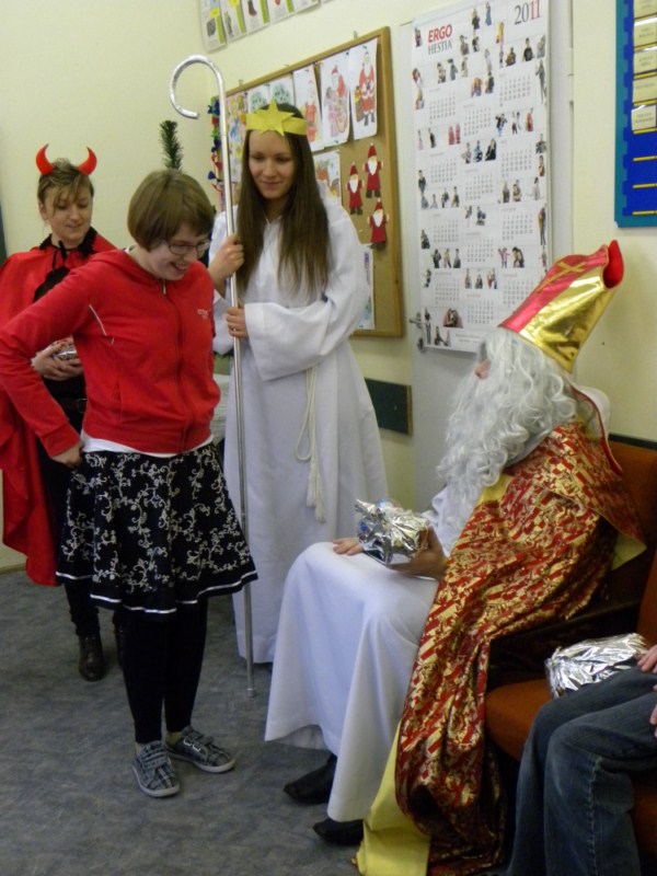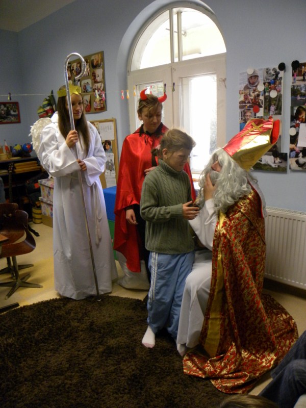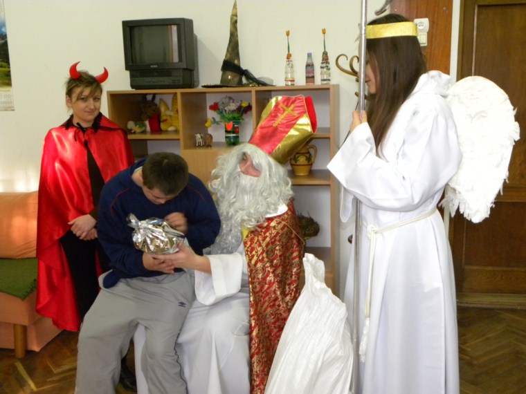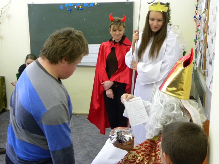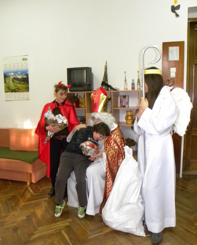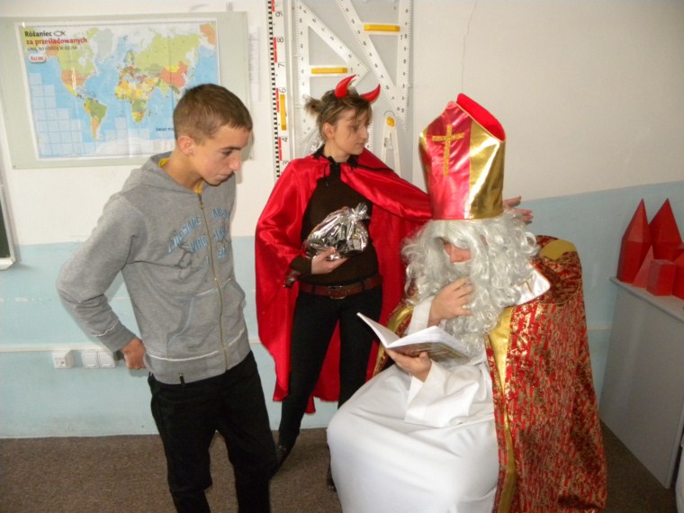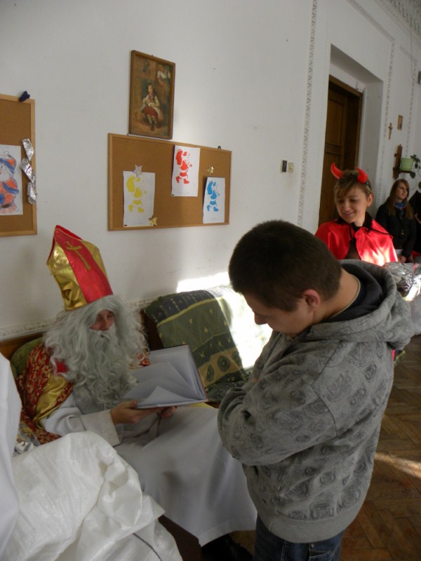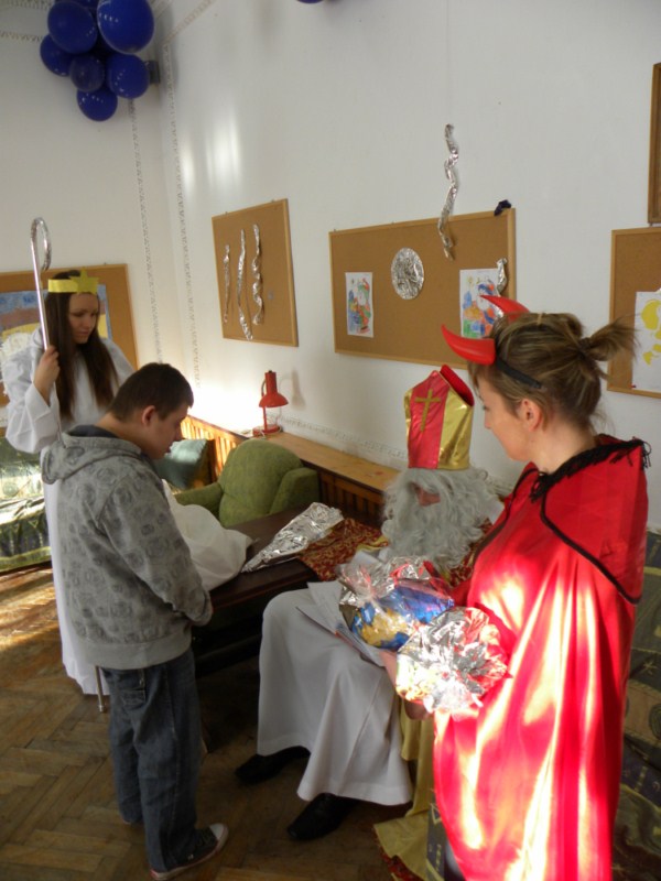 Trudno wyobrazić sobie dzień 6 grudnia bez świętego Mikołaja. Wychowankowie Ośrodka już od rana wypatrywali dorocznych odwiedzin sympatycznego gościa z charakterystyczną białą brodą. Nawet ci, którzy podchodzili do sprawy z pewnym niedowierzaniem, cieszyli się, że wreszcie nastał ten jakże wyczekiwany przez wszystkich dzień. Święty Mikołaj przybył jak co roku, odwiedził wszystkie sale lekcyjne i obdarował milusińskich słodkimi upominkami. Dzieci odwdzięczyły się świętemu radosnym i serdecznym przyjęciem.