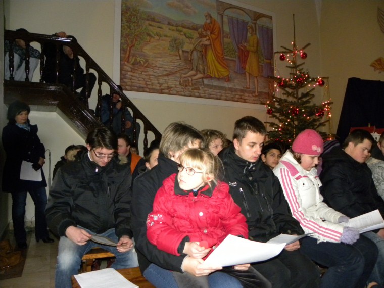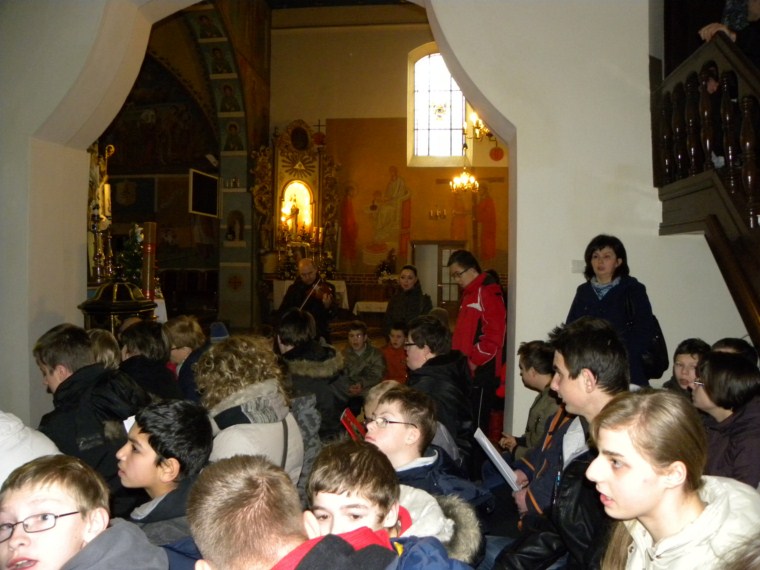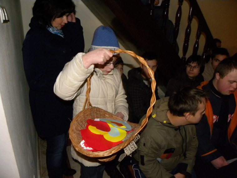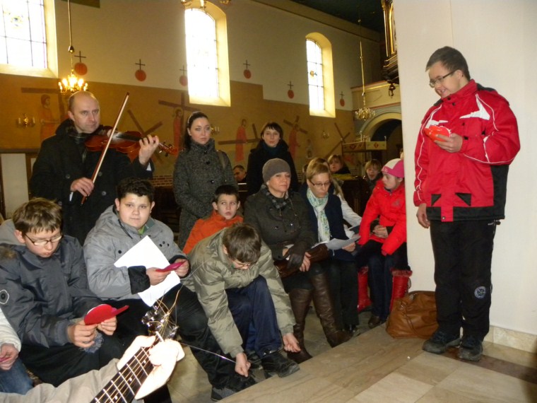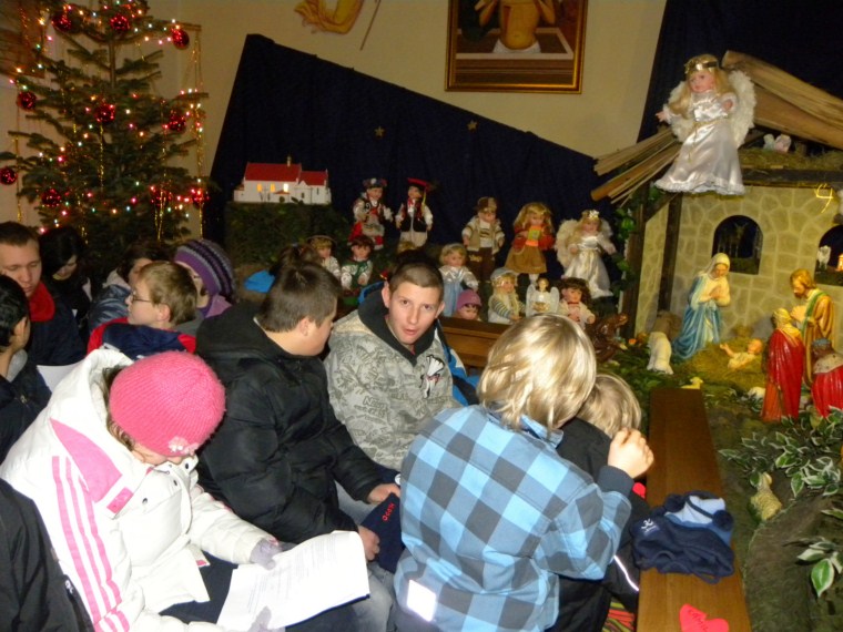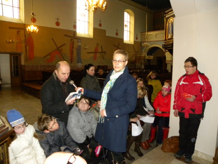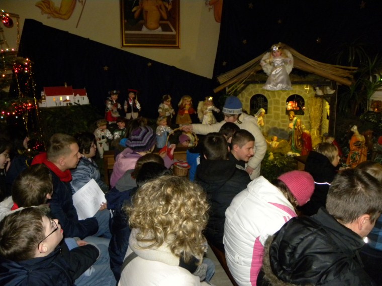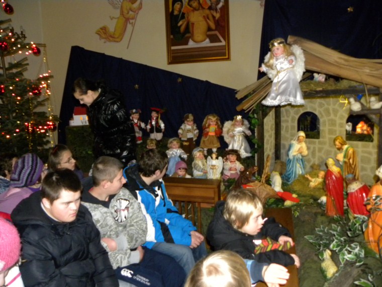 Wkraczając w nowy rok kalendarzowy nauczyciele wraz z dziećmi udali się do pobliskiej świątyni, by śladami pastuszków oraz Trzech Króli pokłonić się Bożej Dziecinie. Wychowankowie z wielką radością uczestniczyli w adoracji żłóbka, gdzie modlitwą i śpiewem wyrażali swoje dziecięce podziękowanie i uwielbienie. Każde dziecko ofiarowało Dzieciątku Jezus również swój dar serca – noworoczne postanowienie wypisane bądź wymalowane na kolorowym serduszku. Adoracja stała się wspaniałą sposobnością nie tylko do pielęgnowania zwyczajów świątecznych, lecz także do pogłębienia wartości religijnych i moralnych wśród uczniów.