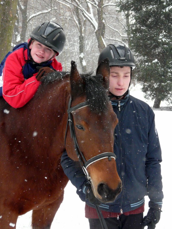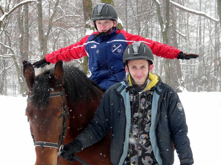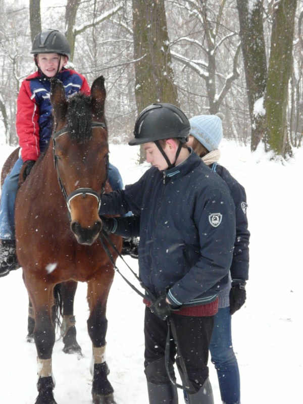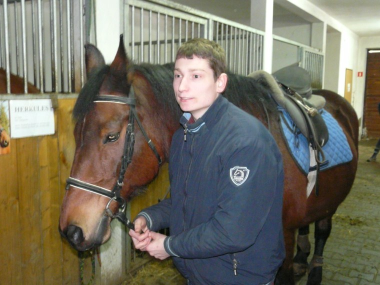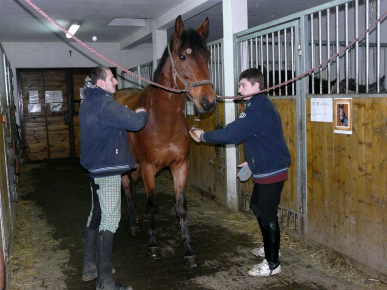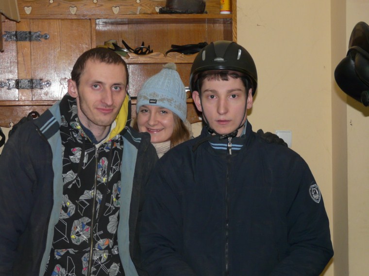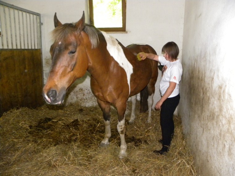 W naszej stadNince od wielu lat funkcjonują tak zwani asystenci hipoterapeutów. Są to nasi uczniowie, którzy najbardziej angażują się w życie stajni. Chętnie przychodzą na wszystkie zajęcia z końmi, pomagają w opiece nad zwierzętami oraz w funkcjonowaniu stajni. Stajnia jest otwarta dla wszystkich uczniów. Każdy kto chce uczestniczyć w jej codziennym życiu, a nie tylko w swoich zajęciach z hipoterapii czy jazdy, może zostać asystentem. Jedyny warunek to zaangażowanie. Oczywiście kadra psychopedagogiczna w stajni pomaga chętnym uczniom poprzez oddziaływanie na ich motywację i kształtowanie zaangażowania. Zazwyczaj 3-4 osoby regularnie pełnią funkcję asystenta. Kilka kolejnych bywa asystentami od czasu do czasu. Są to uczniowie z umiarkowanym oraz lekkim poziomem niepełnosprawności intelektualnej.