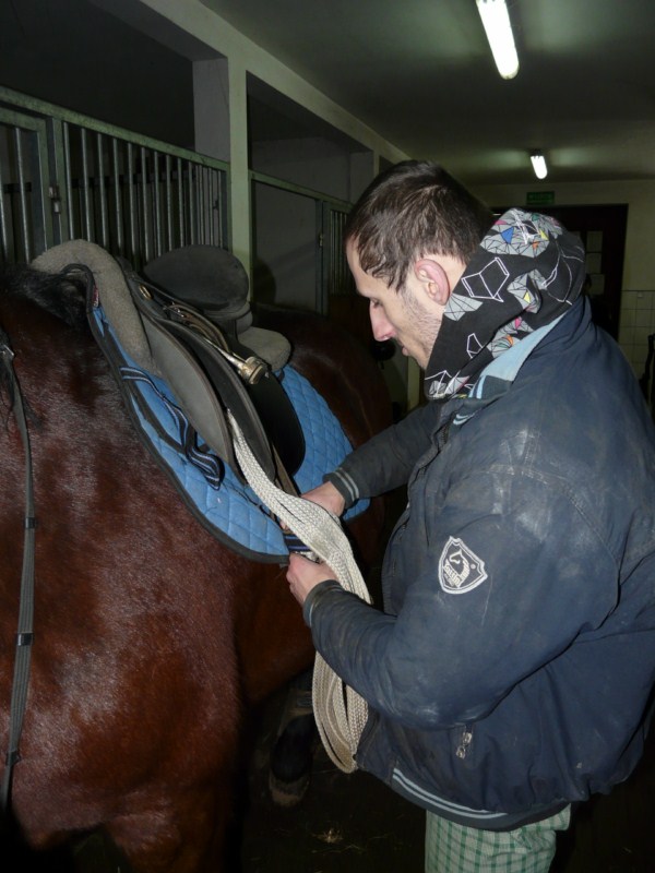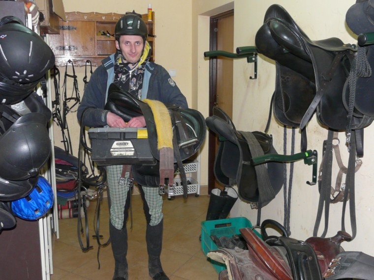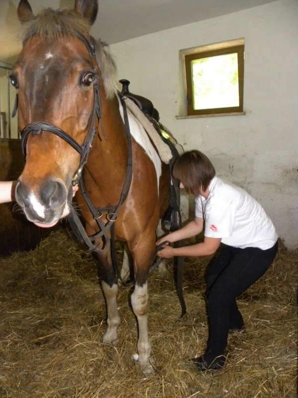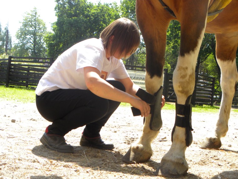 Asystenci pomagają hipoterapeutom w pielęgnacji zwierząt: czyszczą je, karmią, wyprowadzają na wybieg, ścielą słomę. Obecnie czuwają nad dobrostanem 7 koni różnych ras. Dbają o czystość sprzętu jeździeckiego np. czyszczą siodła i ogłowia, pilnują regularnego robienia prania. Przygotowują konie do zajęć (czyszczenie, siodłanie) i zajmują się nimi po pracy. Uczestniczą też w dodatkowych zajęciach z jazdy konnej. Codziennie pomagają podczas zajęć z hipoterapii prowadząc konie. Czasami pracują w stajni przez kilka godzin pod rząd. Wielokrotnie pomagają mniej sprawnym, wymagającym i często trudnym w kontakcie pacjentom. Asystenci są również odpowiedzialni za porządek w siodlarni czy kuchni. Kontrolują stan zaopatrzenia kuchni meldując, kiedy należy zrobić zakupy lub sami dbają o dostarczenie herbaty czy cukru.