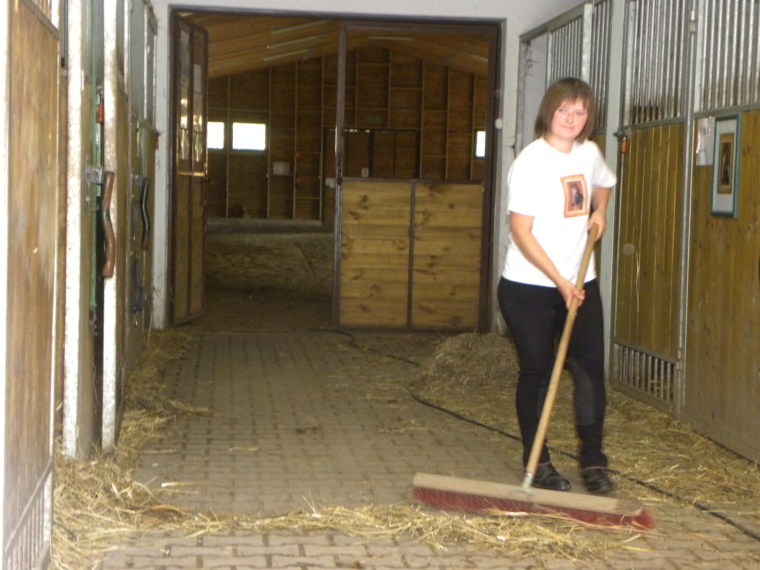 Początkowo asystenci uczą się pracy w stajni poprzez towarzyszenie hipoterapeutom oraz wykonując poszczególne czynności z nauczycielem lub bardziej zaawansowanym kolegą. Później dążymy do ich coraz większego usamodzielniania. Stopniowo odchodzimy od ciągłego towarzyszenia czy pokazywania i przechodzimy do przekazywania dłuższych instrukcji i kontrolowania w trakcie działań aż do sprawdzania jedynie efektów pracy. Jak najczęściej chwalimy asystentów, nawet za najmniejsze sukcesy. Informacje zwrotne przekazujemy w sposób konstruktywny poprzez podanie lepszego sposobu wykonania danej czynności i demonstrację tego, jak to powinno wyglądać. Samodzielność asystentów jest możliwa m.in. dzięki temu, że konie w naszej stajni są bardzo bezpieczne. Uczniowie pracują pod nadzorem hipoterapeutów czuwających nad ich bezpieczeństwem, ale jest to nadzór maksymalnie dyskretny. Staramy się pozostawiać asystentom dużo swobody i możliwości współdecydowania np. o sposobie wykonywania różnych zadań. Kluczowe jest poczucie odpowiedzialności, które zaszczepiamy asystentom. Nasi uczniowie czują, że ich praca jest niezbędna dla codziennego funkcjonowania stajni. Od jakości ich pracy zależy poziom prowadzonych zajęć i co za tym idzie poziom pracy stajni. Kadra psychopedagogiczna i hipoterapeuci pracujący w stajni podkreślają jak ważni są asystenci i jak wiele od nich zależy. Wielokrotnie mówimy o tym uczniom. Rozwijamy ich myślenie przyczynowo-skutkowe poprzez wyjaśnianie efektów związanych z ich pracą czy sposobem/jakością wykonania zadań.