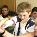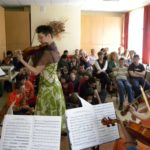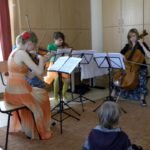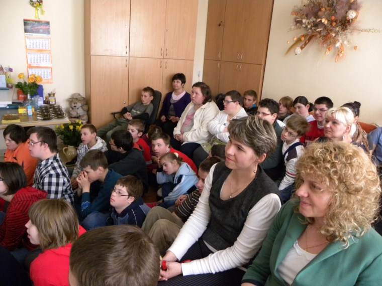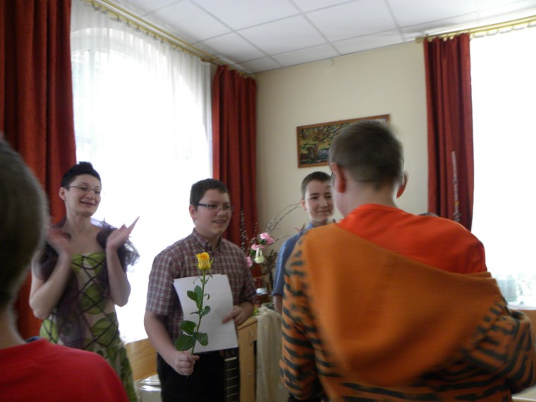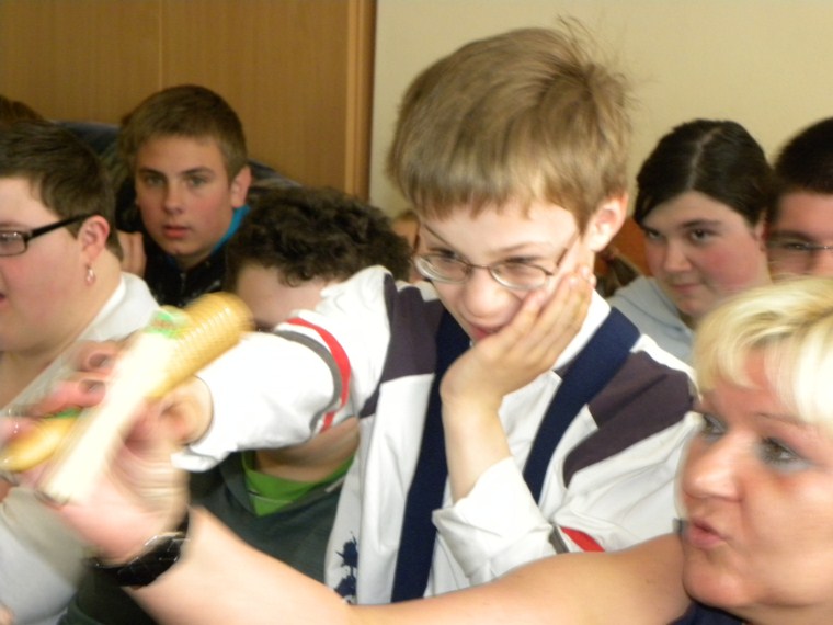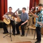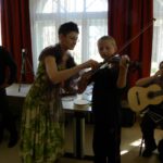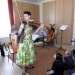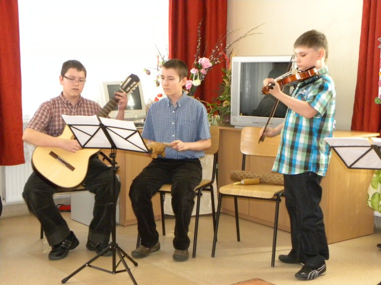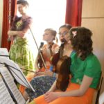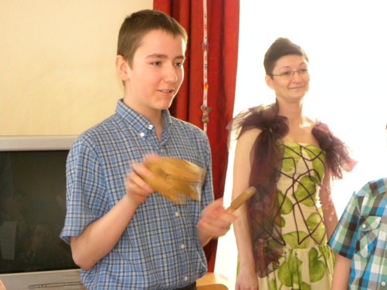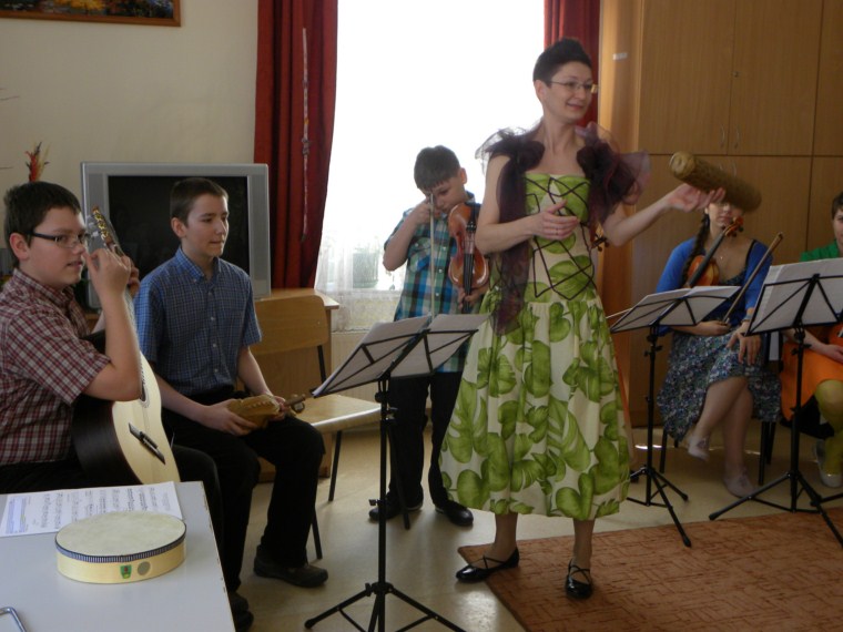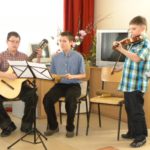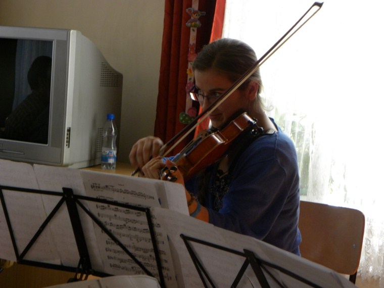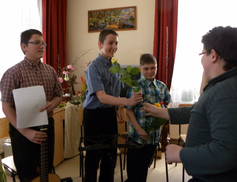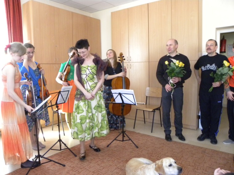 Po raz kolejny gościliśmy w naszym Ośrodku panią Danutę Augustyn z uczniami Państwowej Szkoły Muzycznej w Tarnowie. Kwartet smyczkowy pod kierownictwem pani Danusi wykonał dla naszych podopiecznych kilka utworów różnych wykonawców. Każdy fragment koncertu poprzedzony był odpowiednim komentarzem dopasowanym do potrzeb i możliwości słuchaczy. Obszerny wstęp zachęcił naszych podopiecznych do bardzo aktywnego i uważnego słuchania utworów. Na początek zagrał kwartet w składzie: Karolina, Zuzia, Ewa i Patrycja, który wykonał fragment Czterech pór roku Vivaldiego – Wiosna I cz. Allegro. Nasze dzieci z dużym zaangażowaniem towarzyszyły muzykom grając na instrumentach perkusyjnych. Następnie na scenie zaprezentowali się trzej uroczy chłopcy: Maciej, Kuba i Kacper, którzy wykonali utwory J.M. Zenamena w wersji na skrzypce, gitarę i instrumenty perkusyjne. Były to cztery części: Źródło, Bagna, Wiosenna noc, Na rynku. Na zakończenie ponownie głos zabrał kwartet smyczkowy. Ujmujące instrumentalistki wykonały najpierw utwory B. Bartoka – piosenki dla dzieci cz. Kanon, Allegro, Allegretto oraz utwory Wernera Thomasa – Mifune: Südamerikanische i Saitensprünge.