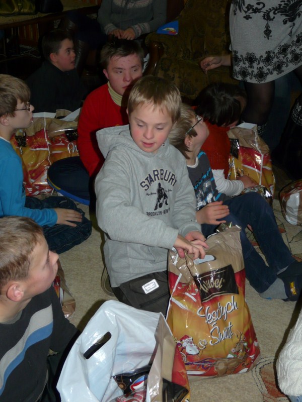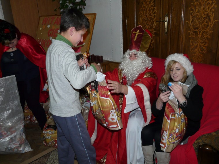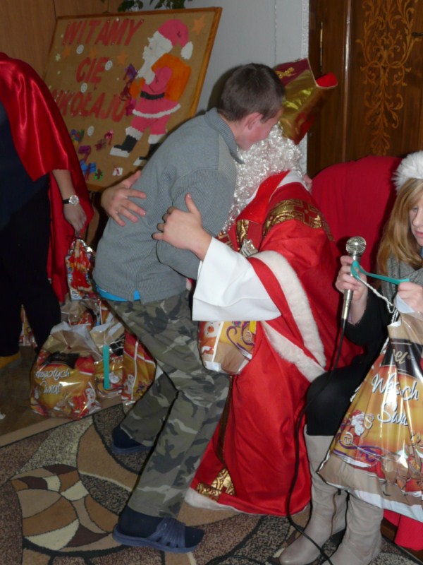Do Ośrodka zawitała zima, a razem z nią przedświąteczna radość i wiele niespodzianek. Wraz z pierwszym śniegiem i przymrozkami przybył święty Mikołaj, wzbudzając u podopiecznych wiele pozytywnych uczuć i niezapomnianych przeżyć. Samo spotkanie z Mikołajem przyniosło tyle emocji, że prezenty okazały się tylko dopełnieniem wspaniałej atmosfery. Tradycji stało się jednak zadość i każde dziecko otrzymało wymarzony podarunek. Mikołaj sprawił podwójną radość, wręczył bowiem każdemu aż dwa worki łakoci. Dzieci odwdzięczyły się świętemu serdecznym przyjęciem, głośnym śpiewem oraz własnoręcznie wykonanymi laurkami. Niezwykłe emocje towarzyszące dzieciom udzieliły się również dorosłym, tworząc niepowtarzalny klimat tego dnia. Ośrodek wypełniła atmosfera wzajemnej życzliwości i nieskrywanej radości. Grudniowy gość niespodziewanie pojawił się w Ośrodku jeszcze tego samego dnia późnym wieczorem. Swym ponownym, zupełnie zaskakującym przybyciem wywołał wielkie poruszenie wśród wychowanków internatu. Chłopcy i dziewczynki przecierali oczy ze zdumienia na widok sympatycznego świętego z kolejnym workiem prezentów i … żużlowych gadżetów. Tym razem Mikołaj przybył z inicjatywy tarnowskiej grupy kibiców ultras PROSTACY’05, organizujących akcję Biało-Niebieski Mikołaj Dzieciom. Jak widać dla ultrasów nie tylko Unia zajmuje ważne miejsce w życiu, ale bliskie są im także sprawy społeczne. Dziękujemy kibicom tarnowskiej Unii za tak wspaniałą postawę!