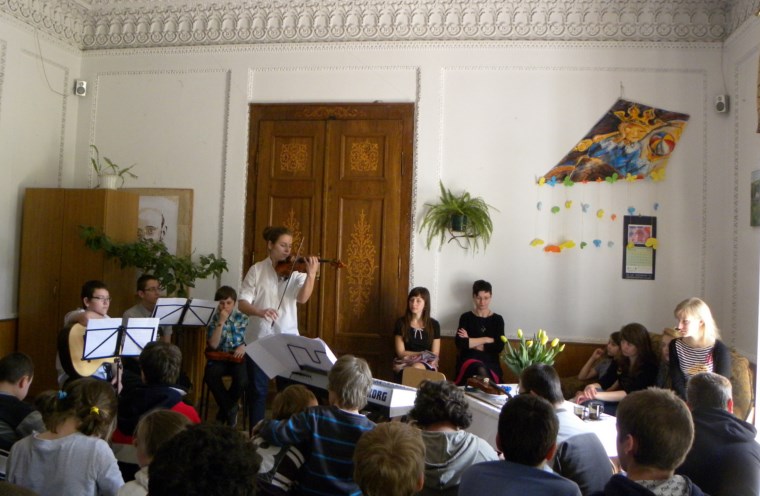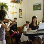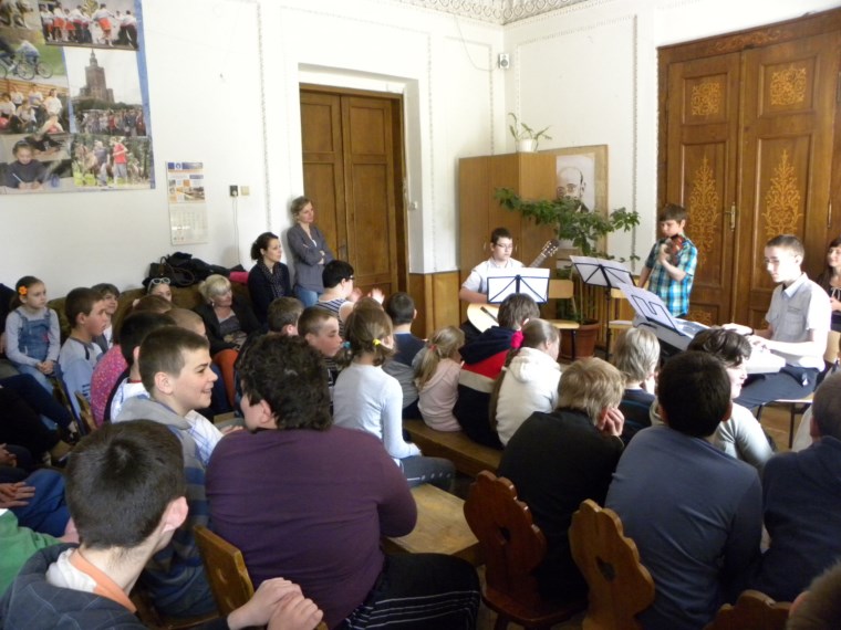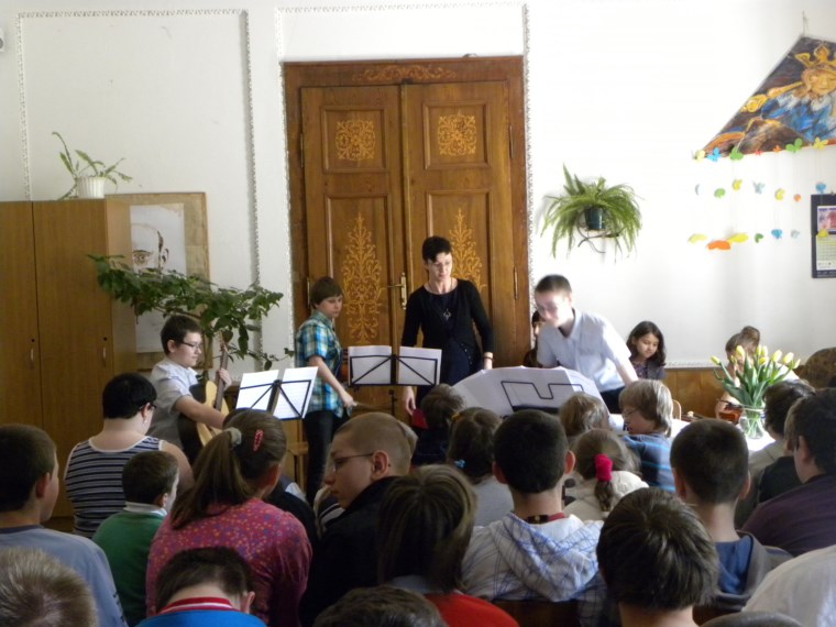 W świetlicy naszego Ośrodka odbyło się kolejne spotkanie z cyklu: „CZTERY PORY ROKU” prowadzone przez młodych artystów z Państwowej Szkoły Muzycznej w Tarnowie pod opieką p. Danuty Augustyn. Motywem kwietniowego koncertu stała się królująca za oknami wiosna. Spotkanie rozpoczęła Dominika brawurowym wykonaniem fragmentu „Czterech Pór Roku” A. Vivaldiego – WIOSNA. Kolejny utwór wykonywany przez Dominikę z akompaniamentem p. Oleny wprowadził naszych wychowanków w klimaty ukraińskiej muzyki ludowej. Następnie na scenie pojawiła się Zuza, która równie fascynująco zaprezentowała dwa utwory na skrzypce – jeden z towarzyszeniem fortepianu, a drugi solo. Spotkanie zostało uwieńczone wspaniałym występem trzech młodych artystów grających na gitarze, skrzypcach i fortepianie. W ich wykonaniu znakomicie wybrzmiały trzy piękne standardy muzyczne.