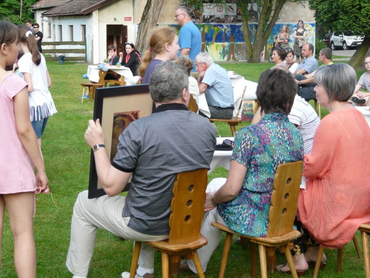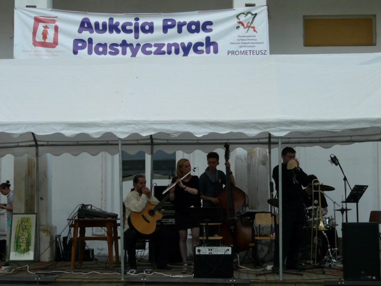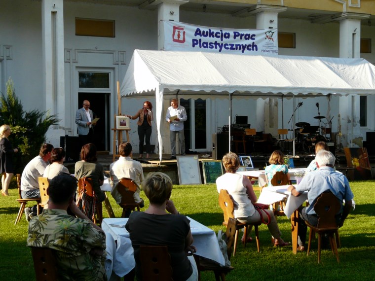 W minioną sobotę miłośnicy sztuki plastycznej mieli doskonałą okazję uzupełnienia swoich zbiorów o kolejne dzieła malarskie, które były przedmiotem Aukcji Prac Plastycznych zorganizowanej przez Stowarzyszenie „PROMETEUSZ” działające na rzecz wychowanków naszego Ośrodka. Dopisała wspaniała, wiosenna pogoda, a galeria zaskoczyła wszystkich zainteresowanych licytacją mnogością proponowanych obrazów. Pod młotek trafiło ponad 40 prac plastycznych, które zostały przekazane na rzecz Stowarzyszenia przez zaprzyjaźnionych z nami artystów. Dodatkową atrakcją była galeria prac plastycznych naszych wychowanków, które u wszystkich ją odwiedzających wzbudzały ogromny zachwyt. Dla miłośników muzyki wielką atrakcją był koncert formacji AFROFREE, której liderem jest pan Piotr Pociask. Zaczerpnięte z muzyki ludowej tematy muzyczne ożyły nową stylizacją, profesjonalizmem wykonania i pozytywną energią. Po zakończeniu aukcji nasi goście mogli skorzystać z bogatej oferty kulinarnej. Majowy piknik zakończył się sukcesem. Zebrane środki pozwolą na wzbogacenie oferty terapeutycznej dla naszych wychowanków i doposażenie Ośrodka w pomoce dydaktyczne.