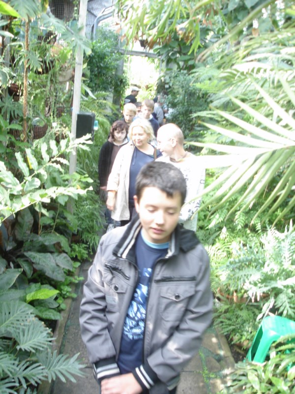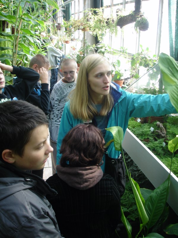 Gimnazjaliści uczestniczący w projekcie: „Poznaję naturę 2000 w mojej okolicy i uczę się zachowań proekologicznych” wzięli udział w bardzo interesującej wycieczce do Ogrodu Botanicznego Uniwersytetu Jagielońskiego w Krakowie oraz do ZOO. W ogrodzie botanicznym uczestniczyli w warsztatach „Botanika wszystkimi zmysłami”. Młodzież zapoznała się z tak różnymi ekosystemami jak ekosystem pustyni i lasu deszczowego. Uczniowie budowali makiety z modelami najbardziej charakterystycznych elementów – zaczynając od składników ekosystemów przyrody nieożywionej i roślin aż do zwierząt w nich żyjących. Zależności między organizmami, ich przystosowania do życia w określonych warunkach stanowiły dla niektórych nie lada problem. Wszelkie wątpliwości i trudności ze zrozumieniem zawiłych uwarunkowań przyrodniczych pomogli oswoić i pokonać prowadzący warsztaty – pani Magda oraz pan Krzysztof. Zaopatrzeni w wiedzę uczniowie rozpoczęli zwiedzanie Ogrodu Botanicznego. Różnorodność kształtów, feeria barw, a także wielość zapachów roślin zrobiły na wszystkich oszałamiające wrażenie. Wśród eksponowanej przyrody uczniowie szukali charakterystycznych cech poznanych wcześniej ekosystemów – udało się to bez większych trudności. W trakcie spaceru po Ogrodzie nasi wychowankowie bez problemów rozpoznawali również rośliny występujące w parku SOSW oraz w miejscach gdzie mieszkają. Warsztaty przybliżyły wszystkim w bardzo przystępny sposób budowę i znaczenie różnych ekosystemów, a także wzajemne relacje i powiązania między nimi. Dzięki tym zajęciom uczniowie uzmysłowili sobie również wielką odpowiedzialność każdego człowieka za ich dalsze istnienie. Uzupełnieniem zajęć w Ogrodzie Botanicznym była wizyta w Ogrodzie Zoologicznym, gdzie każdy miał okazję obserwować zwierzęta żyjących w różnych środowiskach. Największe wrażenia zrobiły na wszystkich słonie prezentujące majestat i wielkość natury. Najwięcej fascynacji wzbudziły popisy gibbonów, a szczególną sympatię zaskarbiły sobie u wszystkich szympansy. Wiele emocji i zainteresowania wzniecali przedstawiciele gadów, pajęczaków czy też różnorodne okazy ptaków.
