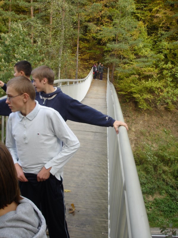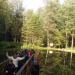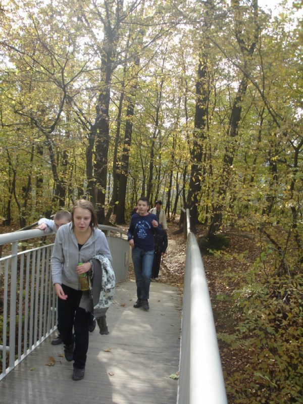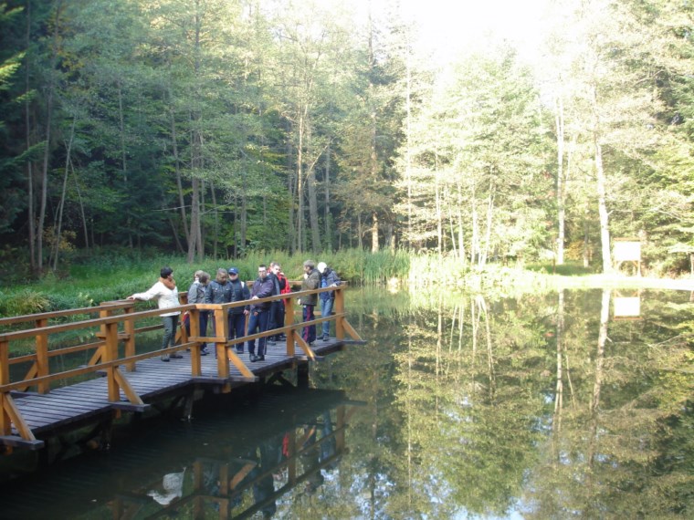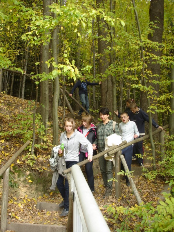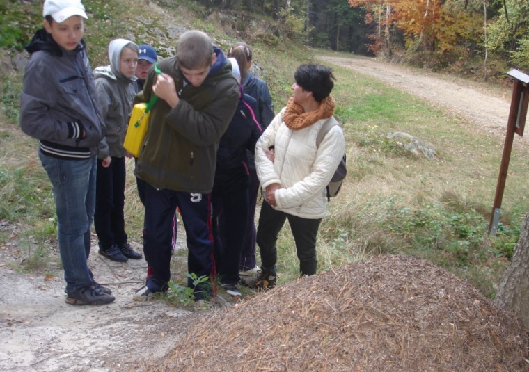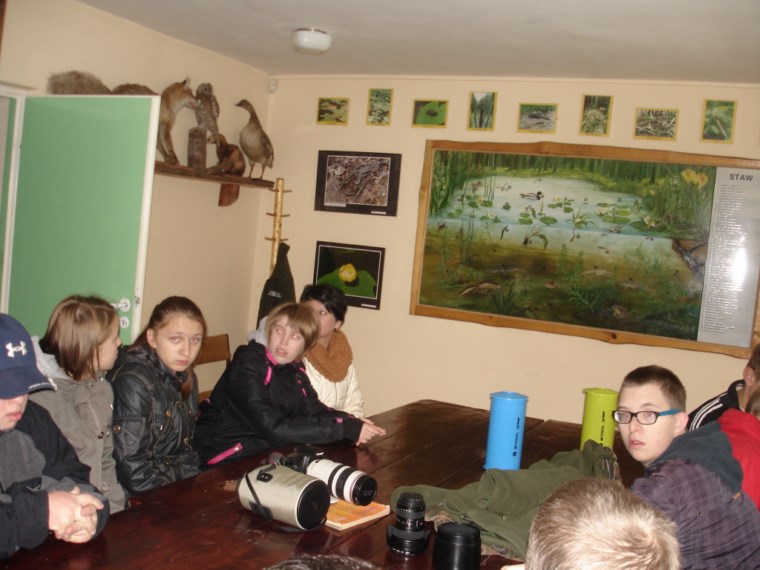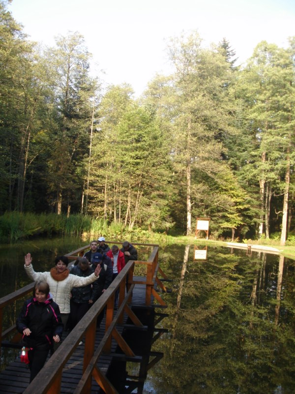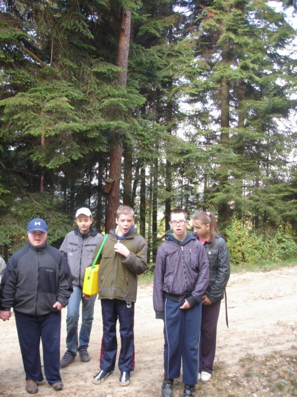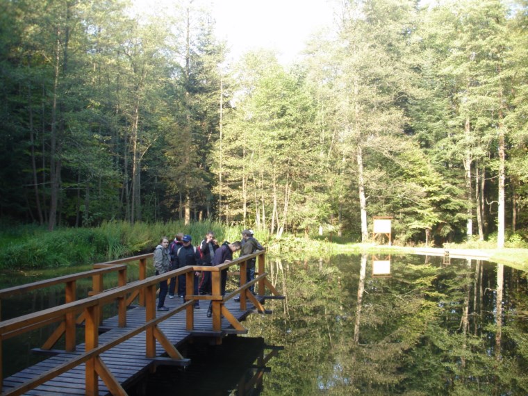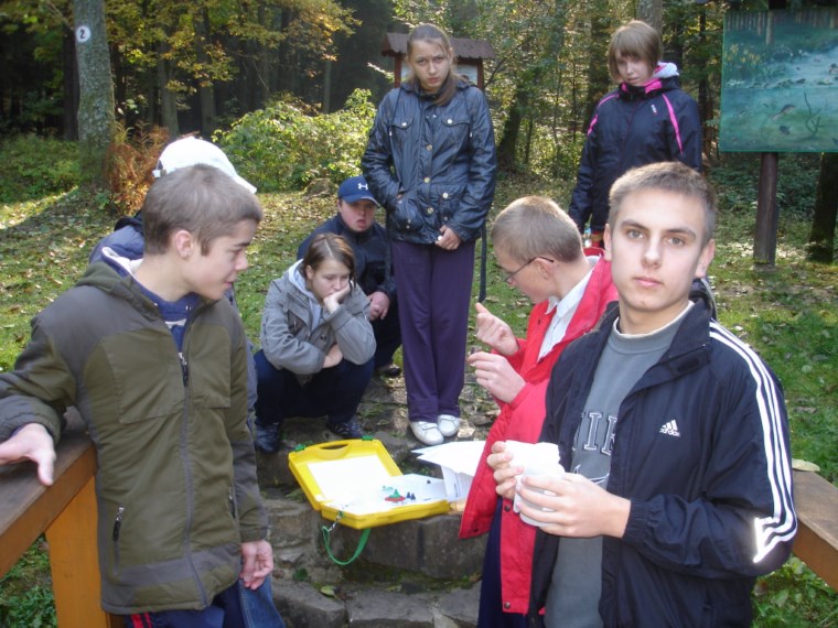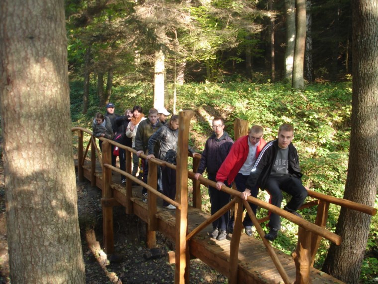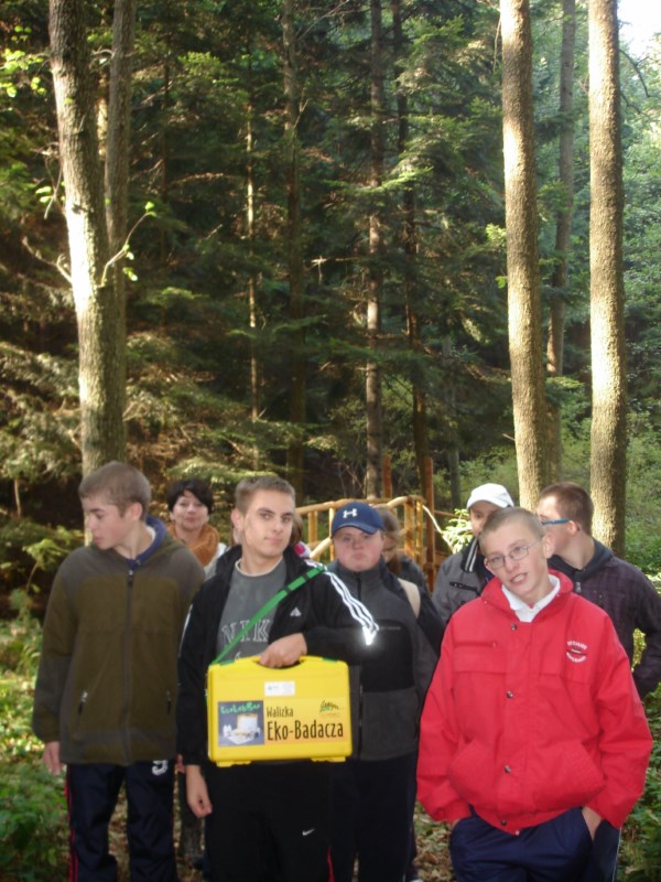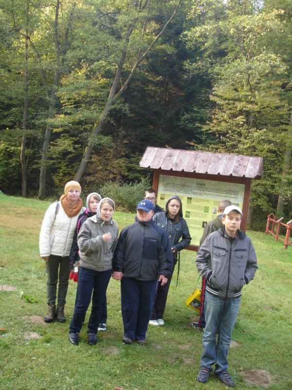 W Ośrodku Edukacyjnym ZPKWM /Zespołu Parków Krajobrazowych Województwa Małopolskiego/ uczestnicy wycieczki zapoznali się z wystawami eksponującymi interesujące, a zarazem chronione rośliny i zwierzęta z tego regionu. Następnym punktem programu było badanie ekosystemu stawu śródleśnego, gdzie wszyscy z zapałem obserwowali rośliny, owady i inne zwierzęta żyjące w tym środowisku. Za pomocą przyborów i odczynników z „Walizki eko-badacza” uczniowie mieli możliwość zbadać stan wody w zbiorniku i w zasilającym go strumyku. Woda była bardzo czysta i pozbawiona zanieczyszczeń. Kolejnym przystankiem na ścieżce był paśnik służący do pomocy zwierzętom w okresie zimowym. Tutaj gimnazjaliści mieli okazję poszerzyć swoje wiadomości o rodzajach karmy dostarczanej zwierzynie. Szczególne zainteresowanie wzbudziły „lizawki”, będące źródłem, tak potrzebnych, szczególnie zwierzynie płowej, minerałów.