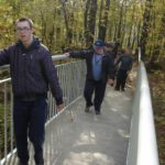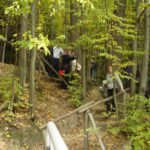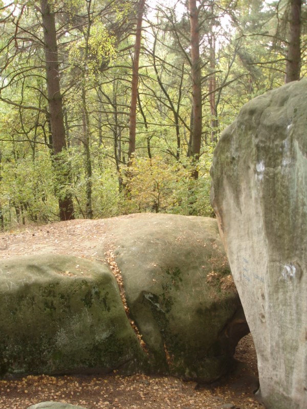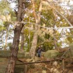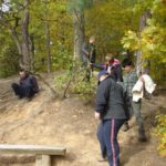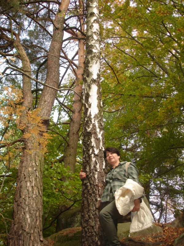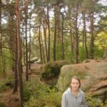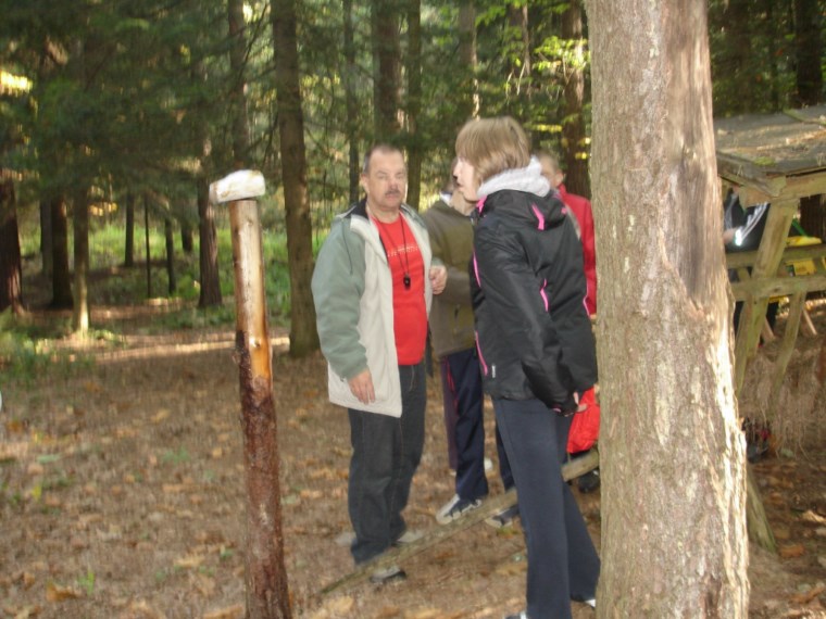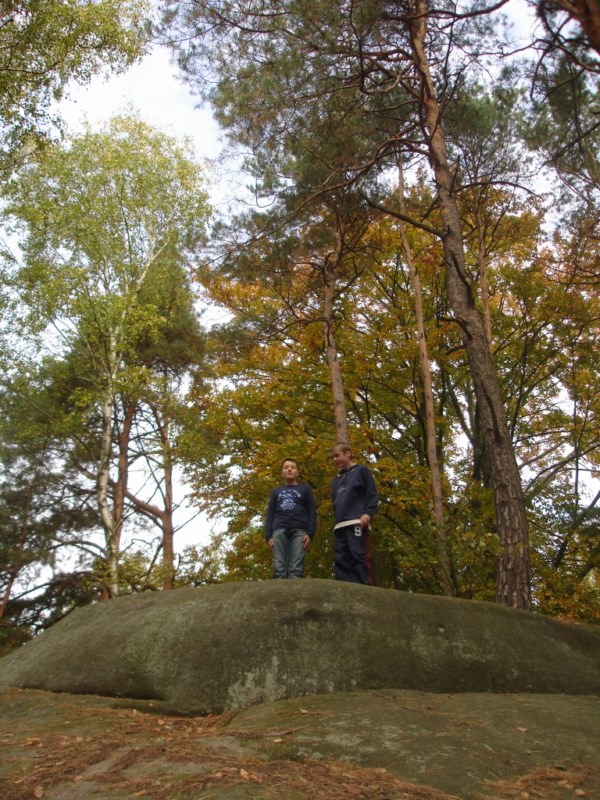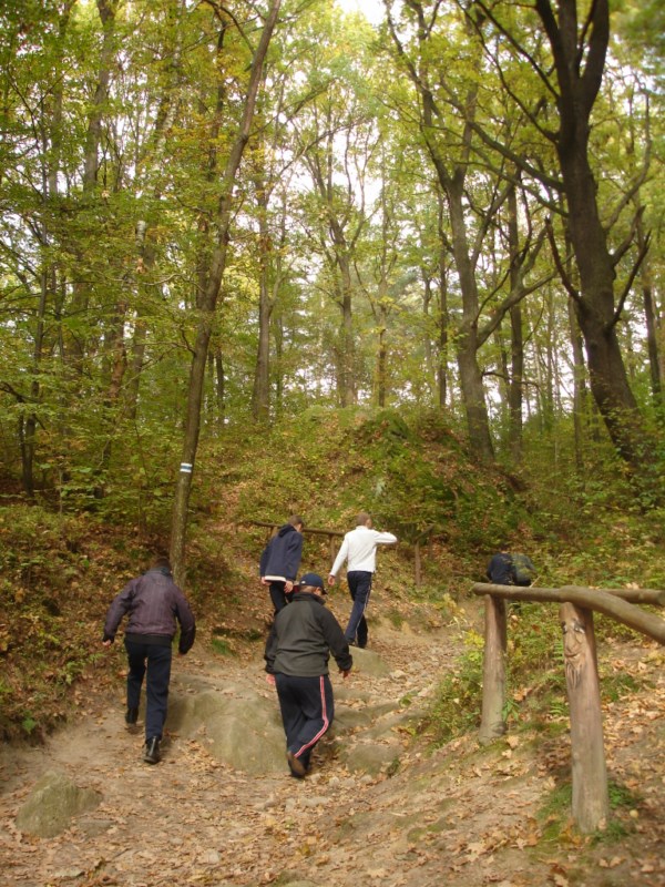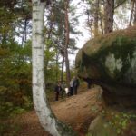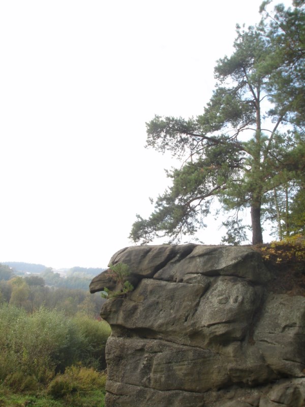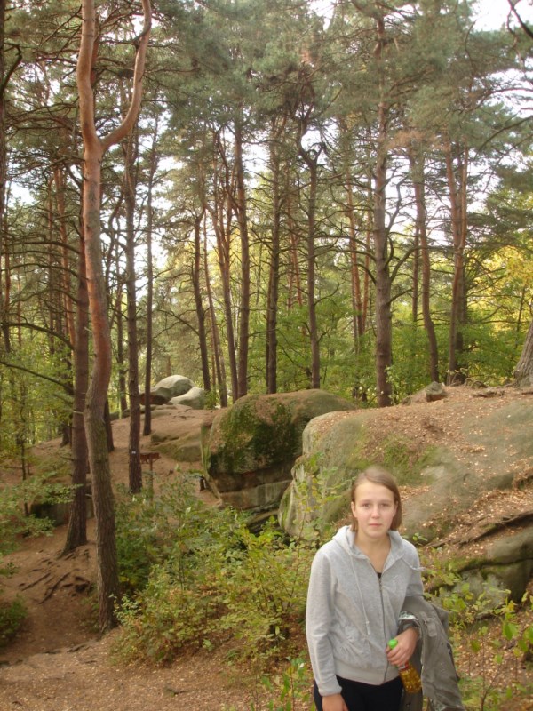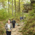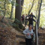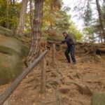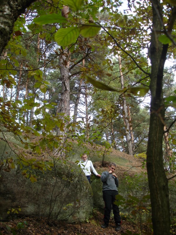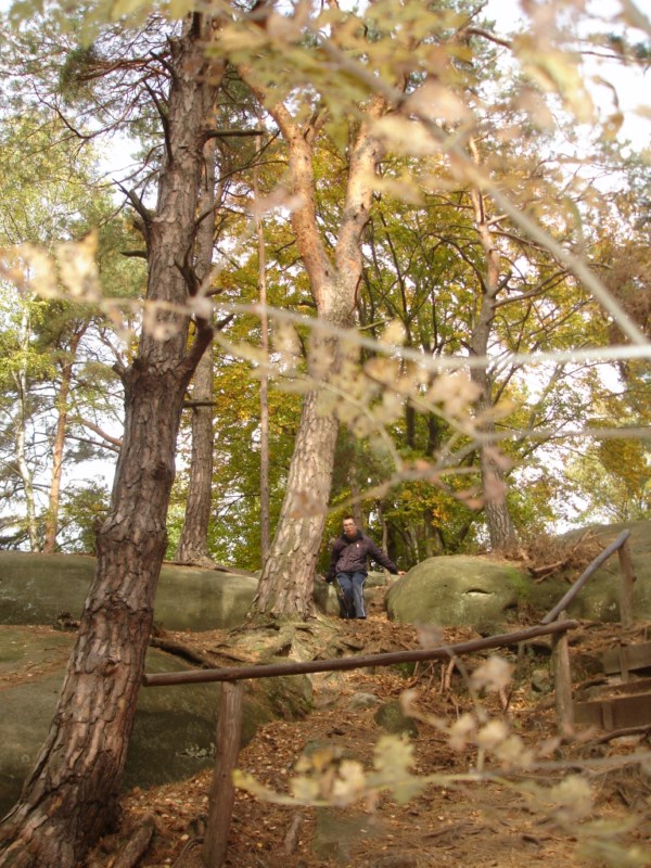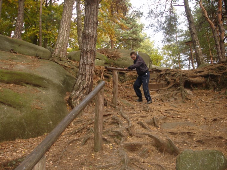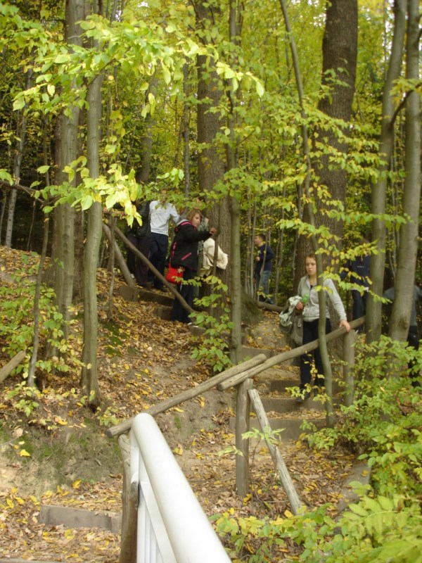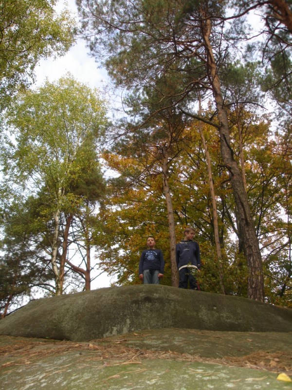 Słoneczna pogoda sprzyjała zarówno wędrówce jak i podziwianiu przepięknie wybarwiających się kolorami jesieni krajobrazów. Wszyscy nieco zmęczeni, lecz pełni wrażeń ruszyli w inną część Parku Krajobrazowego, słynną z tzw. „Skamieniałego miasteczka”. Nie lada atrakcję stanowiło podziwianie niezwykłych formacji skalnych z piaskowca powstałych w wyniku erozji. Jeszcze większą radość wzbudziła niewątpliwie możliwość podziwiania uroków okolicy po wspięciu się na te niesamowite skały.