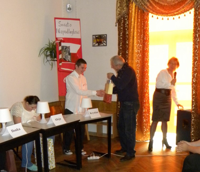 Dzień 14 listopada upłyną w Ośrodku pod znakiem biało – czerwonych barw i patriotycznych pieśni. Tego bowiem dnia uczciliśmy 95 Rocznicę Odzyskania przez Polskę Niepodległości. Obchody rocznicowe miały nietypowy przebieg – nie było nadmiaru wierszy, nie było poważnych wykładów ani długich przemówień. W Ośrodku odbył się konkurs, który stanowił kompilację znanych z telewizji teleturniejów. W konkurencji wzięło udział pięciu wychowanków wyłonionych spośród wszystkich uczniów Ośrodka. Turniej polegał na udzieleniu odpowiedzi na pytania dotyczące polskiej drogi do Wolności oraz odgadnięciu tytułów patriotycznych pieśni. Nie obyło się oczywiście bez odśpiewania kilku zwrotek odgadywanych utworów. Organizatorzy przygotowali także piękne, okolicznościowe kotyliony oraz wzruszającą prezentację multimedialną. Dziękujemy wszystkim zaangażowanym w przygotowanie tej bardzo ważnej uroczystości.