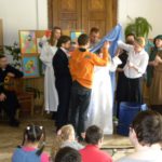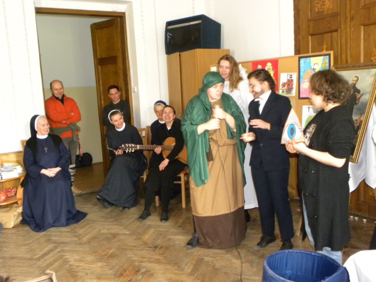 Do Ośrodka przybyli niecodzienni goście – Siostry Służebniczki Dębickie, które z okazji 200 – lecia urodzin bł. Edmunda Bojanowskiego zaprezentowały przepiękną inscenizację o tym niezwykłym człowieku. Przedstawienie wywarło duże wrażenie i poruszenie wśród młodych odbiorców. Zaprezentowana forma przekazu bardzo przypadła do gustu naszym podopiecznym. Radość, otwartość i dobroć sióstr udzieliła się wszystkim uczestnikom tego niezwykłego spotkania. Na zakończenie każdy miał możliwość ucałowania relikwii bł. Edmunda Bojanowskiego. Siostry obdarowały wszystkich także pięknymi prezentami, czym jeszcze bardziej zaskarbiły sobie sympatię dzieci. Dziękujemy naszym Gościom za przybycie i przybliżenie nam postaci wspaniałego społecznika i wychowawcy, a przede wszystkim dobrego i wrażliwego człowieka, jakim był bł. Edmund Bojanowski.