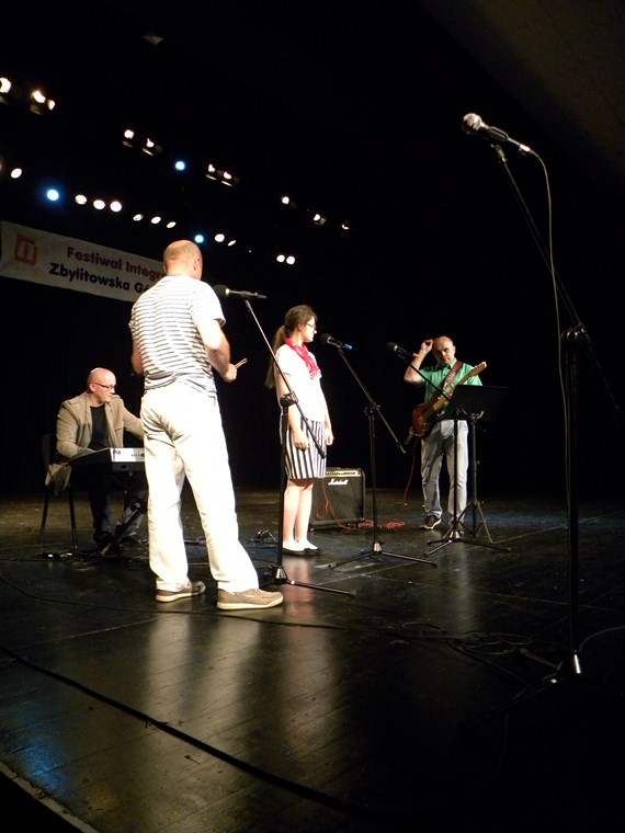 Wśród wykonawców biorących udział w tegorocznym Festiwalu Integracyjnym znaleźli się młodzi instrumentaliści z Zespołu Szkół Muzycznych w Tarnowie, uczniowie Ośrodka Szkolno – Wychowawczego z ul. Romanowicza, przedszkolaki z Przedszkoli nr 18 i 35 z Tarnowa oraz ze Zbylitowskiej Góry. Reprezentowane były również Szkoły Podstawowe: Szkoła nr 20 w Mościcach i Szkoła w Zbylitowskiej Górze. Najdłuższą trasę, bo aż z Jadownik Mokrych pokonali przedstawiciele Ośrodka Rehabilitacyjnego CARITAS. Oczywiście, znakomicie zaprezentowali się też uczniowie naszego Ośrodka w Zbylitowskiej Górze – Ilonka, Bartek, Krystian i Alicja przy akompaniamencie panów: Dawida, Jacka i Macieja.