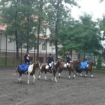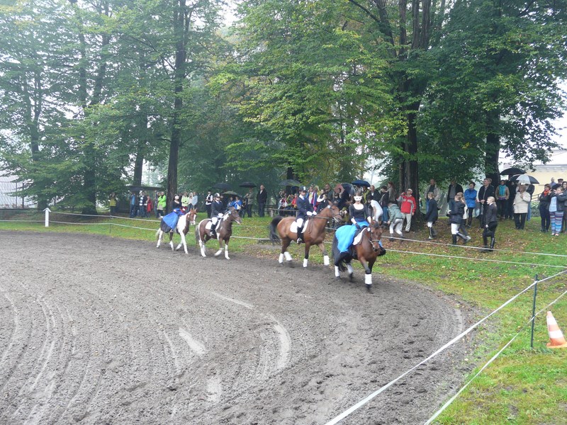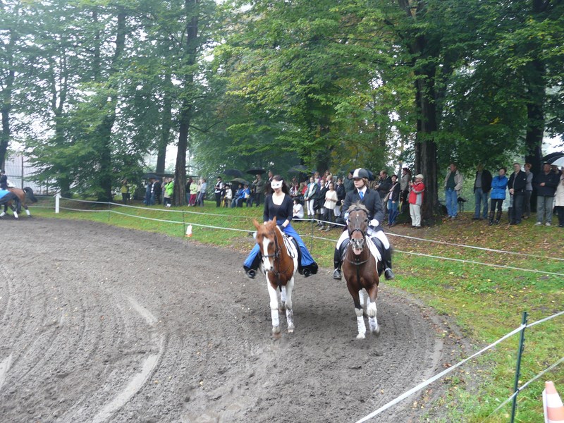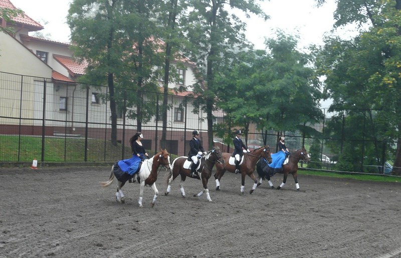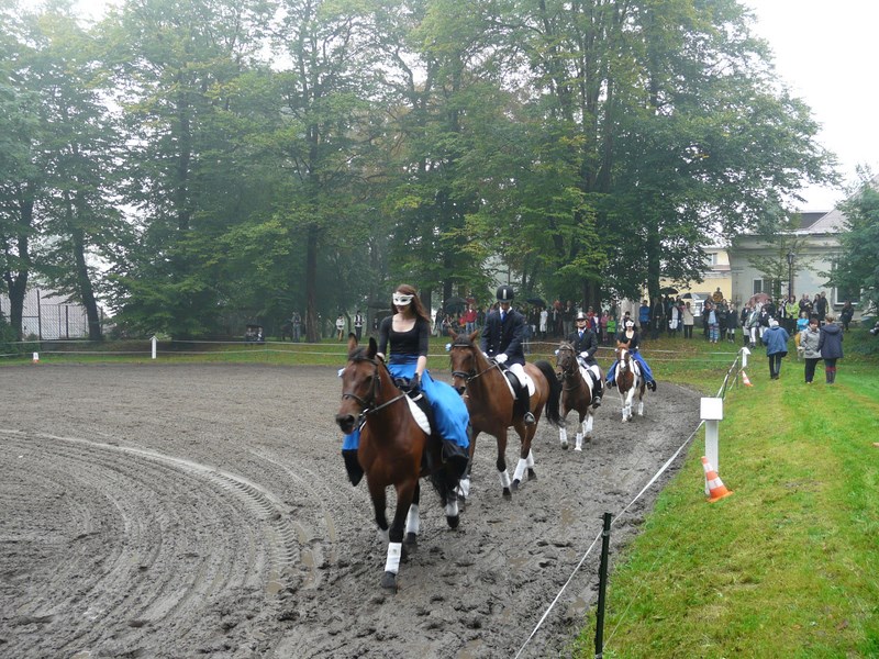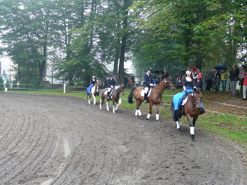 Na początku Natalia Garstka na Elti, Ada Kowalik na Motylu, Marcin Iwaniec na Otto, Paweł Sanecki na Herkulesie zaprezentowali pięknie Kadryla na cztery konie. Pokaz pracy z młodym koniem Liwii Iwaniec wywołał gromkie brawa, podobnie jak Kadryl na 6 koni w wykonaniu Ani Sulowskiej na Herkulesie, Kuby Bystrowskiego na Motylu, Weroniki Skórki na Elti, Iwonki Zięby na Sanie, Amelki Jarońskiej na Otto i Zuzi Podleśny na Kubie. Ze względu na pogorszenie się podłoża odwołany został mini konkurs skoków przez przeszkody, ale amazonki zaprezentowały pojedyncze skoki przez obniżone przeszkody. Następnie dzieci i młodzież uczestniczyły w jeździeckich zabawach „na wesoło”. Można było wystartować w jeździeckim slalomie czy „wesołych krzesełkach”. Z pewnością po takich zabawach wzrośnie ilość miłośników koni. Również miłośnicy psów mogli znaleźć atrakcję dla siebie – wykwalifikowany treser psów Katarzyna Chrobak zaprezentowała niebywałe umiejętności psa Iskierki, które zachwyciły zgromadzonych gości.
