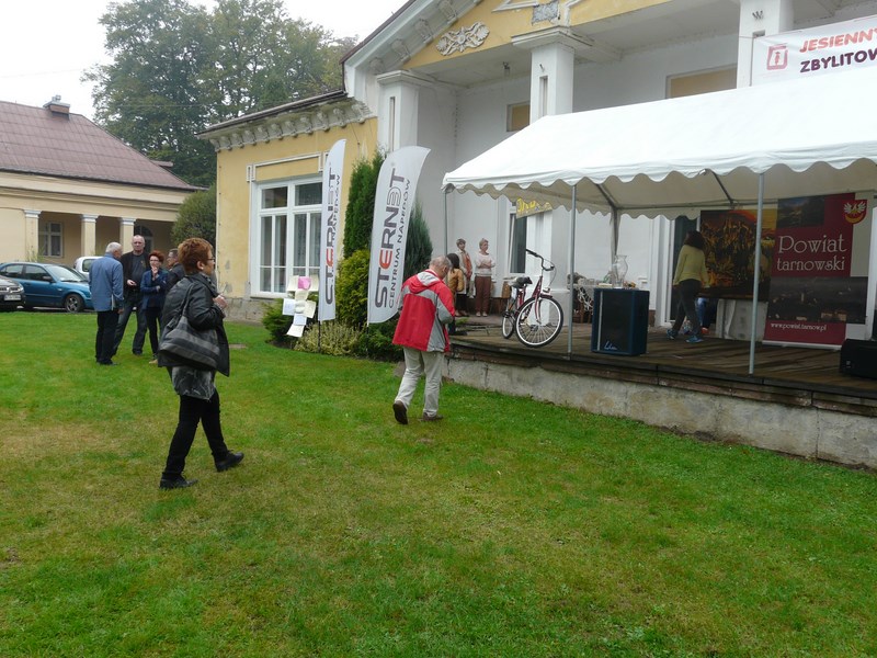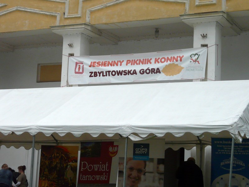 Jak co roku, organizatorzy zadbali o wiele atrakcji, mających na celu umilenie Gościom tego wyjątkowego jesiennego popołudnia. Tradycyjnie już Chłopskie Jadło zachęcało miłośników staropolskiej kuchni do spróbowania domowych przetworów, ogórków kiszonych, smalcu domowej roboty, masełka i sera z wiejskiej chaty i prawdziwego chleba z chlebowego pieca. Miłośników solidnego, męskiego jedzenia wabił zapachami grill, serwujący potrawy z mięsiw i kiełbas, a także stoisko z bigosem, który rozgrzewał i dodawał sił w ten słotny dzień. A jeśli znalazł się wśród gości taki, co z dobrym humorem nie przyjechał, to z pewnością przy kawie i słodkościach domowej roboty, odzyskiwał radość życia. I z tą właśnie radością i nadzieją na główną wygraną w loterii nasi goście nabywali od „serduszkowych pań” serca z losami, które miały się okazać szczęśliwymi w czasie finałowego losowania nagród. Loteria wsparła działające na terenie Ośrodka Stowarzyszenie na Rzecz Pomocy Dzieciom Niepełnosprawnym i Ich Rodzinom „Prometeusz”. Chyba nie wielu młodych jeźdźców wyobraża sobie, że mogłoby wyjechać ze Zbylitowskiej Góry bez koszulki z emblematem konia. Stoisko z koszulkami oferowało i nęciło kilkoma rodzajami , tak więc wybór między koszulką polo a podkoszulkiem z grafiką Herkulesa był wyjątkowo trudny. Do tego kubek z konikiem – i tak zaopatrzeni jeźdźcy ruszali na część główną i najbardziej oczekiwaną – pokazy jeździectwa.