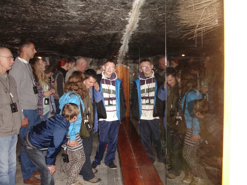 Nasi uczniowie zostali zwycięzcami XIV Festiwalu Sportu organizowanego przez Zespół Szkół Brata Alberta w Wieliczce. Za zdobycie I miejsca otrzymali bardzo atrakcyjną nagrodę – bilety na zwiedzanie trasy turystycznej w słynnej Kopalni Soli. Pobyt w tym niezwykle urokliwym miejscu zachwycił naszych podopiecznych. Po dotarciu do kopalni pokonali sporo stopni schodząc na trasę pełną atrakcji. Zwiedzanie zaczęli od organoleptycznego sprawdzenia, czy wszystko to naprawdę sól. Tak to była sól, jednak pan przewodnik w trosce o swoje miejsce pracy tj. Muzeum Żup Solnych zabronił dalszego lizania ścian. Eksponaty i modele przybliżały historię wydobycia soli i zmiany technik jej wydobycia, a ciekawe anegdoty opowiadane przez przewodnika ubarwiały mroczne czeluście kopalni. Było też trochę strachu, gdyż w ciemnościach czyhali tajemniczy mieszkańcy kopalni- zobaczycie ich na zdjęciach. Wychowankowie byli zachwyceni zjawiskowymi miejscami, oświetleniem i aurą tajemniczości panującą w kopalni. Trudno opisać wszystko co zobaczyli młodzi odkrywcy, to trzeba przeżyć samemu, jednak dla zobrazowania choć części atrakcji warto obejrzeć parę zdjęć z tej wycieczki.