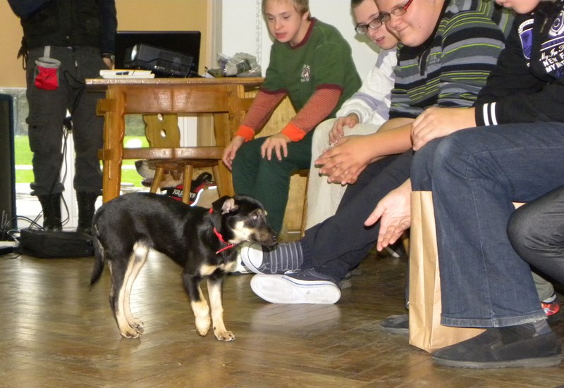 Po tym jakże energicznym występie nastąpił finał imprezy. W związku z faktem, iż w naszym Ośrodku kilka dni wcześniej pojawiły się dwa szczeniaki – piesek i suczka, został ogłoszony konkurs na imiona dla małych czworonogów. Każda klasa spisała swoje propozycje, z których specjalne jury, składające się z nauczycieli i uczniów, wybrało dwa imiona, Boston i Melisa.