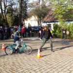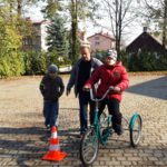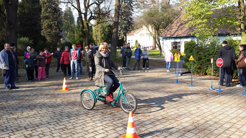 Wychowawcy klas Szkoły Podstawowej po przeprowadzonych pogadankach i szkoleniach zorganizowali „konkurs wiedzy o ruchu drogowym”. Pytania konkursowe dotyczyły zasad ruchu drogowego obowiązujących pieszych i rowerzystów. Poziom wiedzy był zróżnicowany, jednak wszyscy uczniowie wykazali się wiedzą i umiejętnościami, które pozwolą im bezpieczniej poruszać się po drogach. Na podsumowanie wszystkich działań związanych z udziałem w konkursie „Odblaskowa szkoła” na terenie SOSW zorganizowano happening plenerowy. W imprezie udział wzięli wszyscy uczniowie SOSW, a także harcerze i zaprzyjaźnieni goście z innych szkół. Happening obejmował pogadankę na temat bezpieczeństwa ruchu drogowego, rozpoznawania znaków drogowych, a także: pokazy bezpiecznego poruszania się po drodze, przejścia przez jezdnię, zakładania opasek i kamizelek odblaskowych. W tych działaniach aktywnie pomagali nam harcerze ucząc najmłodszych przechodzenia przez jezdnię przez tzw. „zebrę”. Dużą atrakcją były zabawy sprawnościowe doskonalące technikę jazdy na rowerze . Uczestnicy pokonywali tor przeszkód, który za każdym przejazdem podlegał zmianom. Na koniec odbyły się zawody sprawnościowe w jeździe rowerem trójkołowym , w których wszyscy uczestnicy otrzymali w nagrodę za doskonałą jazdę opaski odblaskowe.