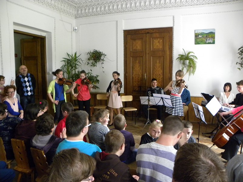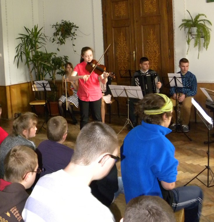 Po raz kolejny mieliśmy ogromną przyjemność gościć panią Danutę Augustyn wraz z uczniami Państwowej Szkoły Muzycznej w Tarnowie. Młodzi muzycy pod kierownictwem pani Danusi wykonali specjalnie dla naszych podopiecznych kilka utworów różnych wykonawców. Motywem wiosennego koncertu stała się muzyka francuska. Każdy fragment koncertu poprzedzony został odpowiednim komentarzem dopasowanym do potrzeb i możliwości naszych wychowanków. Dziękujemy p. Danusi i p. Olenie za wspaniałe spotkanie oraz za przygotowanie utworów przemawiających do wyobraźni uczniów, a także za sympatyczną atmosferę podczas koncertu. Muzyka zaprezentowana w sposób tak profesjonalny i plastyczny wywarła na naszych wychowankach wielkie wrażenie. Muzyczne spotkania doskonale wpisują się w realizowany w Ośrodku program edukacji muzycznej, stanowiący jedną z wielu form terapii naszych podopiecznych. Tak atrakcyjna, bezpośrednia forma kontaktu z żywą muzyką i wykonawcami pozwala wychowankom doświadczać niezapomnianych wrażeń artystycznych i kulturalnych, dostarcza pozytywnych, niezapomnianych przeżyć i wzruszeń.