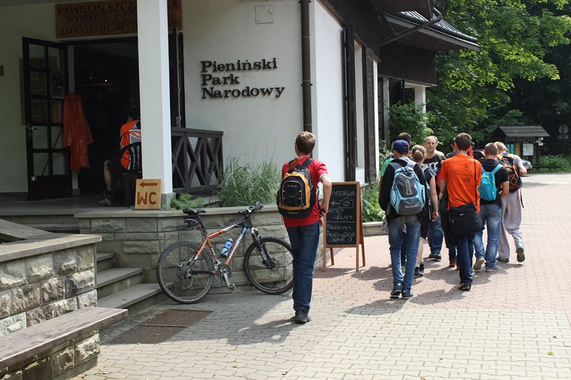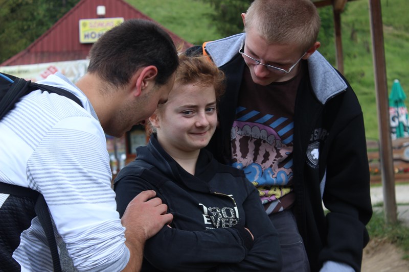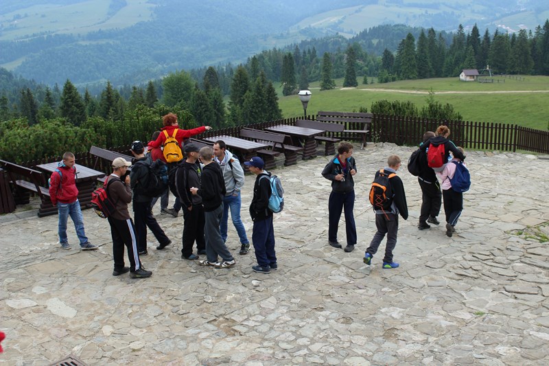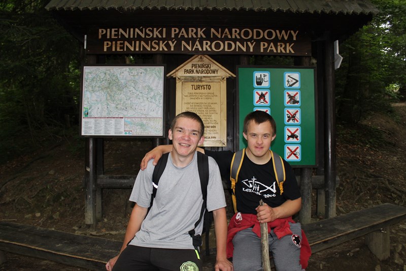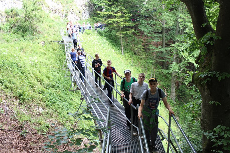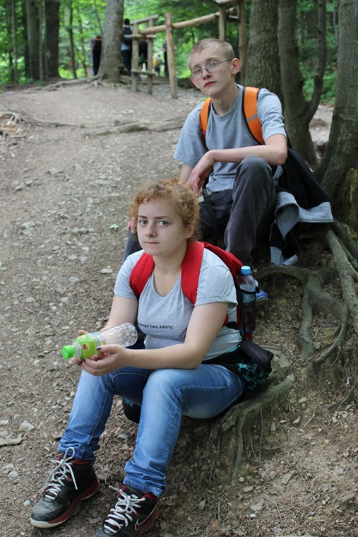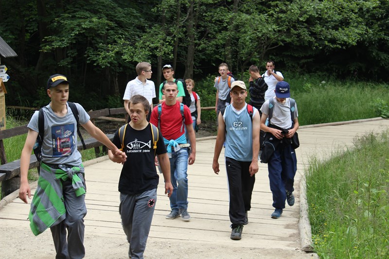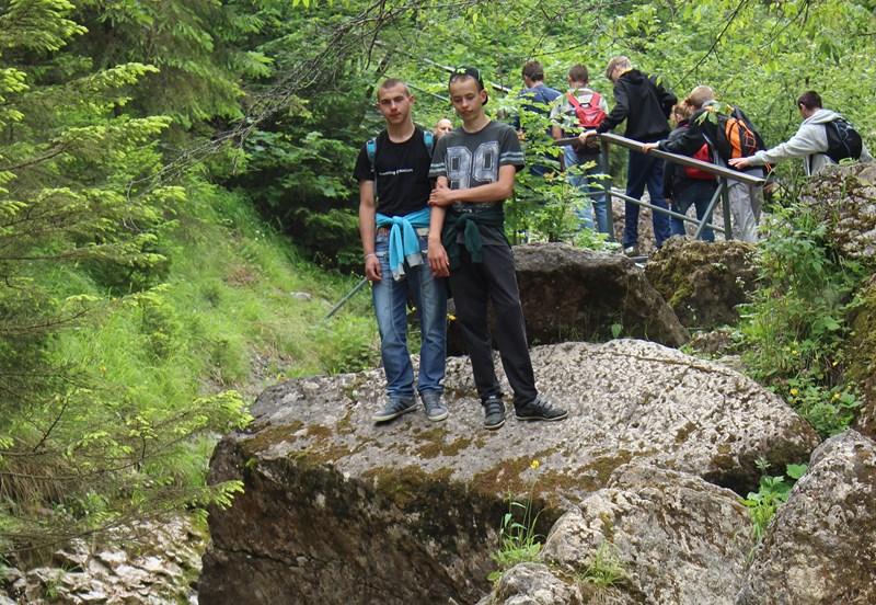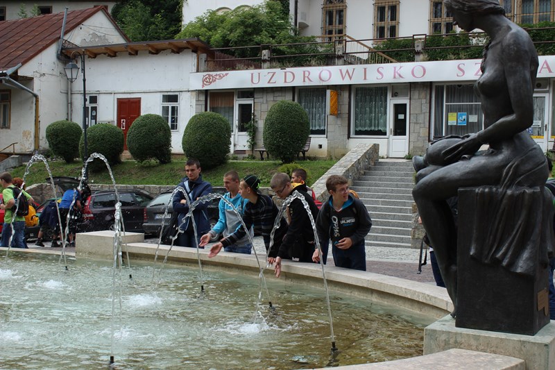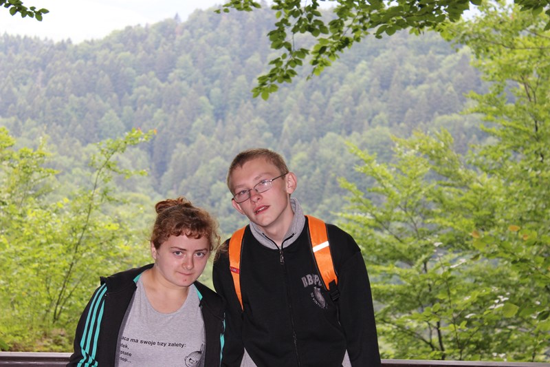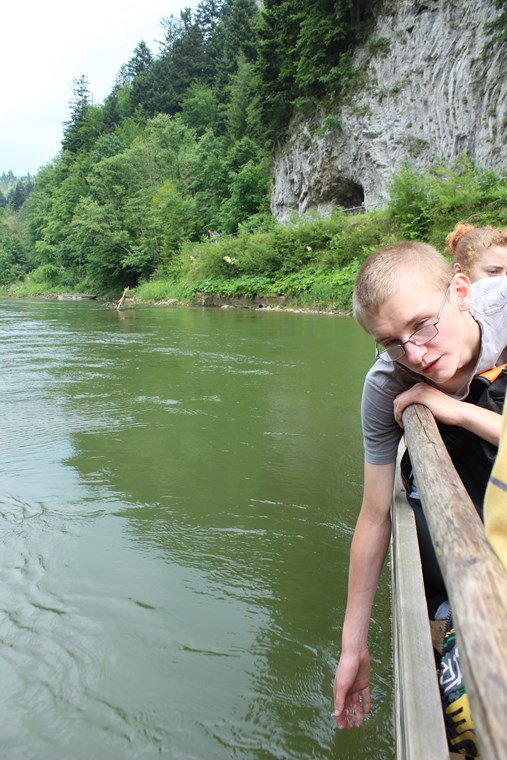 Wielkie wrażenie wywarła na wszystkich także wycieczka do Wąwozu Homole, położonego niedaleko punku noclegowego. Wytrwali wędrowcy z zachwytem spoglądali na efektowne kaskady potoku, wijącego się pośród malowniczych wapiennych ścian Wąwozu. Ogromne głazy i kamienie budziły wśród naszych podopiecznych respekt, zdumienie i zachwyt. Po dotarciu na Bereśnik, młodzież podziwiała cudowną panoramę Beskidu Sądeckiego. Krótkie lekcje geografii na szczycie, przeplatały chwile upajania się pięknem majestatycznych gór. Po obiedzie w regionalnej karczmie przyszedł czas na następną niespodziankę – zjazd z góry kolejką linową , który dostarczył niesamowitego odczucia – podziwiania krajobrazów z lotu ptaka. Po tylu przeżyciach wędrowcy regenerowali siły w Pijalni Wód Mineralnych w Szczawnicy. Ale to nie był jeszcze koniec atrakcji! Przejście promenadą wzdłuż urokliwego Grajcarka, doprowadziło turystów do przystani, gdzie przy brzegu kołysała się tratwa flisacka. Sporą niespodzianką okazał się spływ Dunajcem, rzeką z którą tak blisko są związani nasi wychowankowie. Flisak prowadzący tratwę, opowiadał regionalne gawędy, nie szczędząc przy tym humoru i życzliwości, a wychowankowie podziwiać mogli sąsiadujące z brzegami rzeki cudowne masywy skalne Sokolicy.