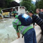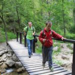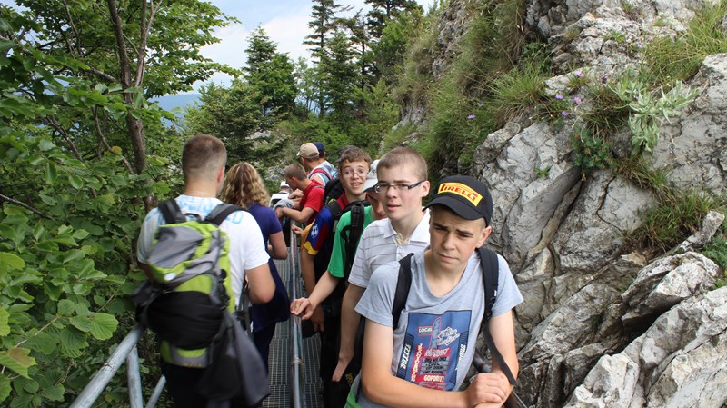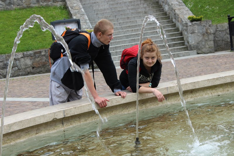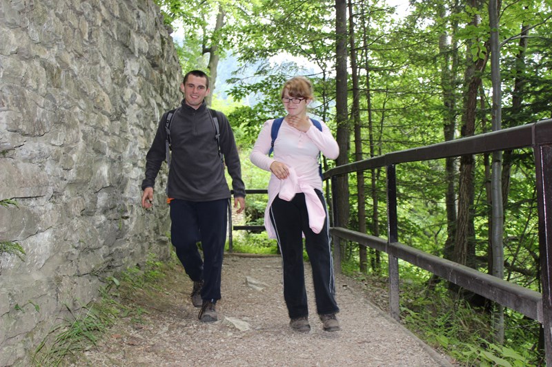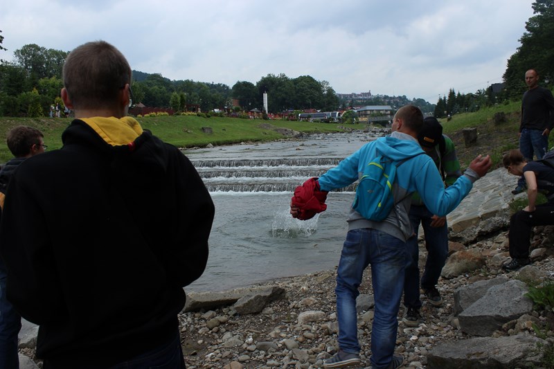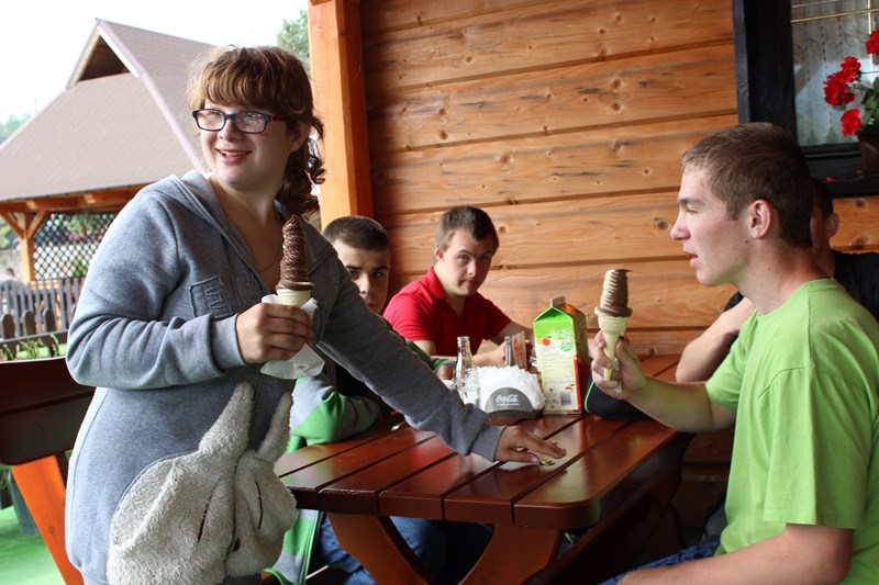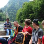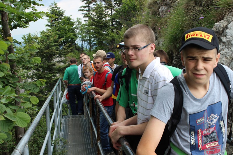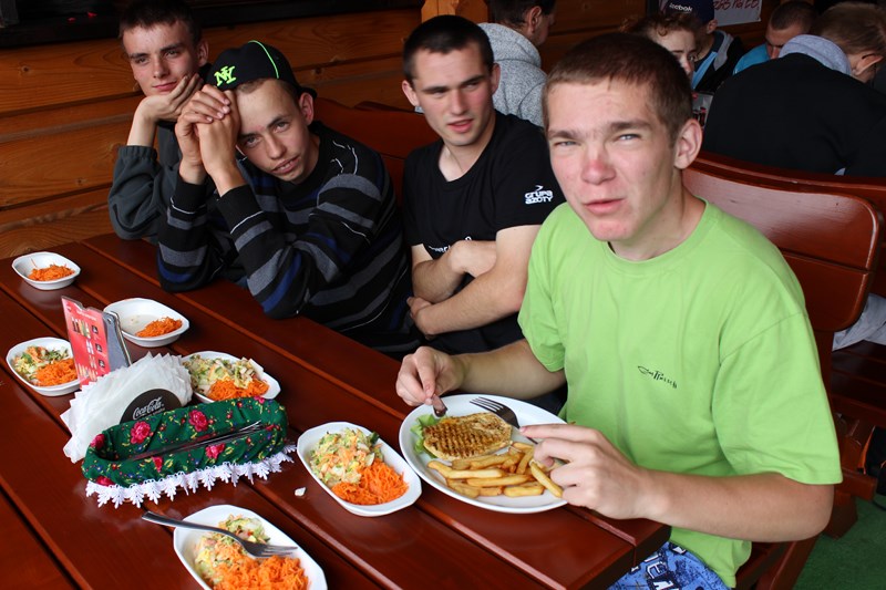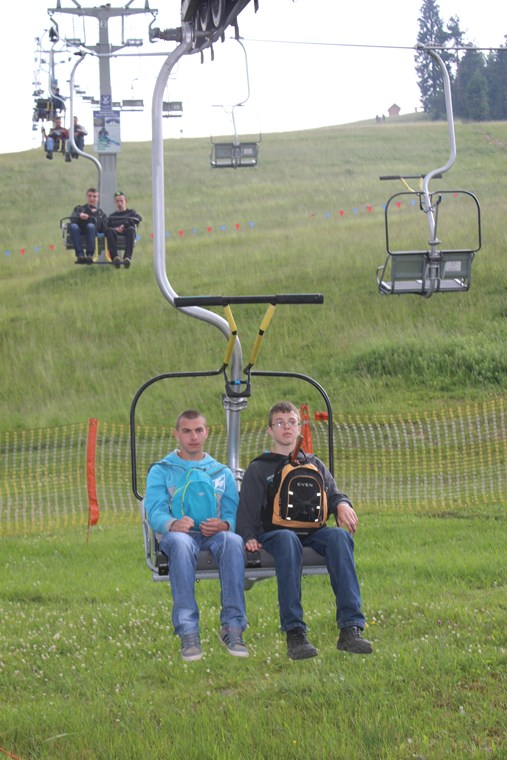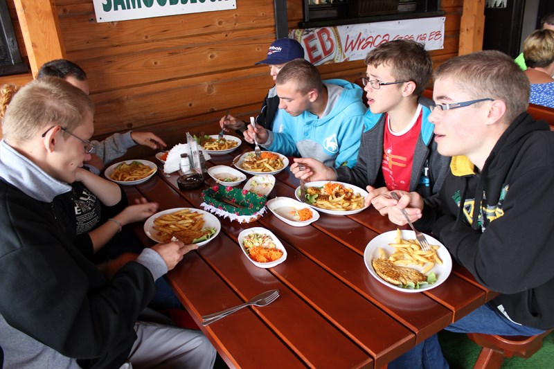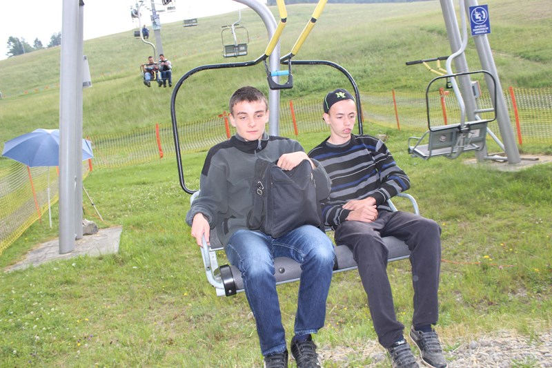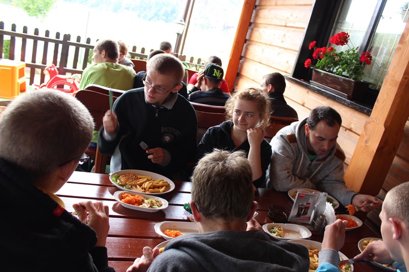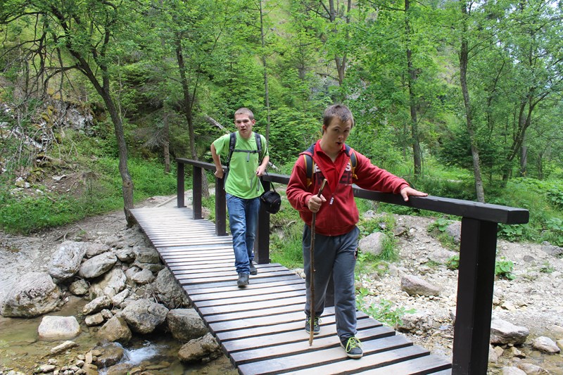Wielkie wrażenie wywarła na wszystkich także wycieczka do Wąwozu Homole, położonego niedaleko punku noclegowego. Wytrwali wędrowcy z zachwytem spoglądali na efektowne kaskady potoku, wijącego się pośród malowniczych wapiennych ścian Wąwozu. Ogromne głazy i kamienie budziły wśród naszych podopiecznych respekt, zdumienie i zachwyt. Po dotarciu na Bereśnik, młodzież podziwiała cudowną panoramę Beskidu Sądeckiego. Krótkie lekcje geografii na szczycie, przeplatały chwile upajania się pięknem majestatycznych gór. Po obiedzie w regionalnej karczmie przyszedł czas na następną niespodziankę – zjazd z góry kolejką linową , który dostarczył niesamowitego odczucia – podziwiania krajobrazów z lotu ptaka. Po tylu przeżyciach wędrowcy regenerowali siły w Pijalni Wód Mineralnych w Szczawnicy. Ale to nie był jeszcze koniec atrakcji! Przejście promenadą wzdłuż urokliwego Grajcarka, doprowadziło turystów do przystani, gdzie przy brzegu kołysała się tratwa flisacka. Sporą niespodzianką okazał się spływ Dunajcem, rzeką z którą tak blisko są związani nasi wychowankowie. Flisak prowadzący tratwę, opowiadał regionalne gawędy, nie szczędząc przy tym humoru i życzliwości, a wychowankowie podziwiać mogli sąsiadujące z brzegami rzeki cudowne masywy skalne Sokolicy.