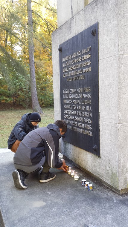 Uczniowie naszego Ośrodka w listopadzie odwiedzili także cmentarz parafialny w Zbylitowskiej Górze, gdzie oddali hołd zmarłym oraz zapalili znicze pamięci na grobie Żabów – dawnych mieszkańców dworku, w którym obecnie mieści się Ośrodek Szkolno – Wychowawczy. Stało się już tradycją, że wychowankowie czczą także pamięć ofiar II Wojny Światowej w pobliskim lesie – Buczynie, gdzie składają kwiaty pod pomnikiem upamiętniającym miejsce martyrologii z okresu hitlerowskiej okupacji.