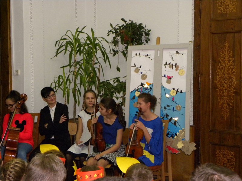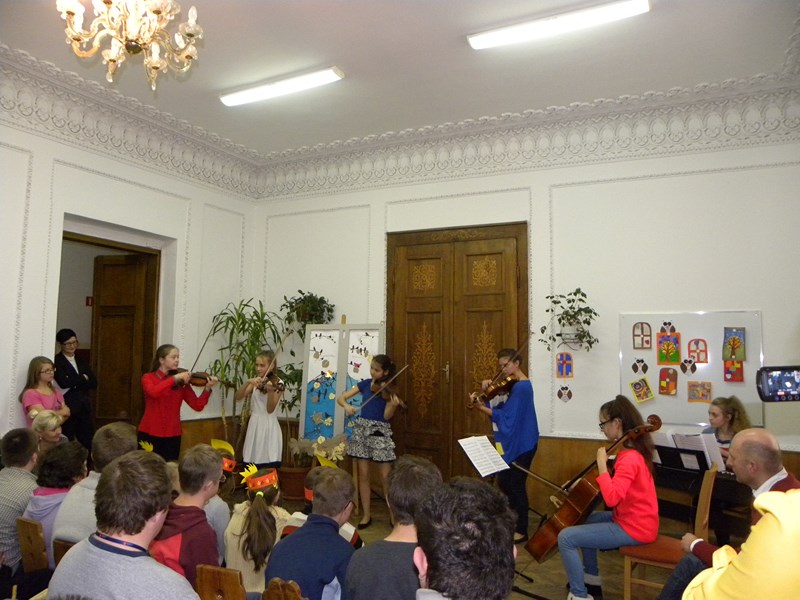 Dziękujemy uczniom Państwowej Szkoły Muzycznej w Tarnowie, którzy przybyli do naszego Ośrodka z jesiennym koncertem. Młodzi muzycy pod kierownictwem pani Danusi wykonali specjalnie dla naszych podopiecznych wiele utworów różnych wykonawców. W zaaranżowanej na salę koncertową świetlicy wybrzmiały utwory wielkich kompozytorów, takich jak: G. Tartini, A. Vivaldi, H. Wieniawski. Każdy fragment koncertu poprzedzony został odpowiednim komentarzem dopasowanym do potrzeb i możliwości naszych wychowanków. Muzyka zaprezentowana w sposób tak profesjonalny i plastyczny wywarła na naszych wychowankach wielkie wrażenie. Bezpośredni kontakt z żywą muzyką i wykonawcami dostarczył wszystkim wiele przeżyć i wzruszeń.
