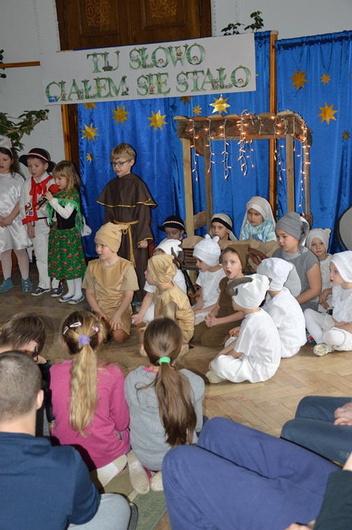 Do naszego Ośrodka zawitały dzieciaki z Publicznego Przedszkola nr 5 w Tarnowie z grupy IV „Pszczółki”. Sympatyczni goście zaprezentowali wspaniale przygotowane jasełka na podstawie scenariusza Adama Szafrańca. Tytuł sztuki teatralnej, którą młodzi aktorzy przedstawili to „Słowo ciałem się stało”. Dzieci wcieliły się w role różnych postaci, pragnąc zobrazować opowieść o narodzeniu Zbawiciela. Maluchy wyjaśniły trudne prawdy o Wcieleniu Syna Bożego i jego miłości do człowieka w sposób bardzo radosny i humorystyczny. Dialogi ubogacała spora dawka humoru i oryginalności.