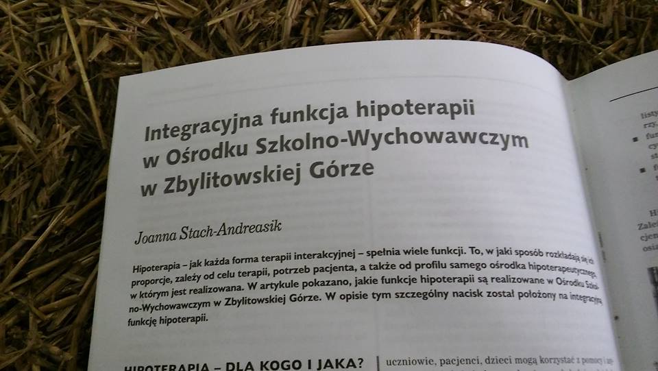 Z radością informujemy, że ukazał się najnowszy numer Przeglądu Hipoterapeutycznego 2015/1(16). Znajdują się w nim m.in. artykuły na podstawie wystąpień z Ogólnopolskiej Konferencji Hipoterapeutycznej, która odbyła się w czerwcu w Zbylitowskiej Górze. W Przeglądzie można przeczytać teksty pedagogów i instruktorów z SOSW: Joanny Stach-Andreasik pt. „Integracyjna funkcja hipoterapii w Ośrodku Szkolno – Wychowawczym w Zbylitowskiej Górze” oraz Magdaleny Pikul pt. „Aktywności hippiczne wspierające funkcjonowanie osób z niepełnosprawnością intelektualną”. Ponadto naszemu Ośrodkowi poświęcona została okładka najnowszego numeru. Zachęcamy do lektury!