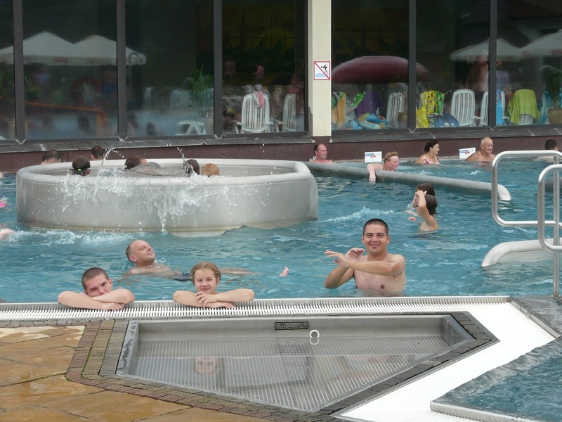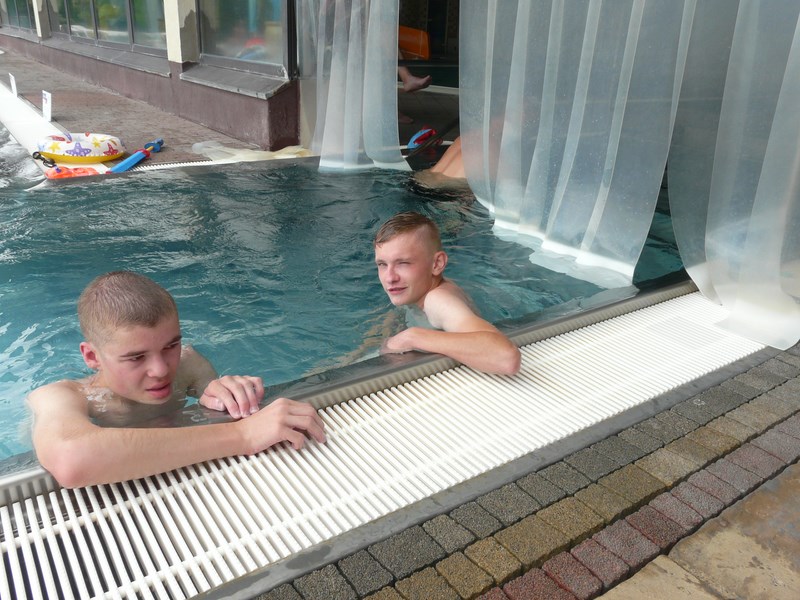 Niezwykłych wrażeń dostarczył wszystkim kolejny dzień spędzony na basenach termalnych. Od rana do wieczora wszyscy czerpali pełnymi garściami z bogatej oferty wodnych atrakcji oferowanych przez termy Szaflary. Nasi podopieczni mieli do dyspozycji niezliczoną ilość basenów, hydromasaży, zjeżdżalni, fontann, biczów wodnych i rwących strumieni. Radość z pobytu w tym wodnym raju jest nie do opisania.