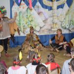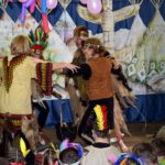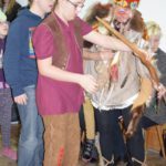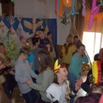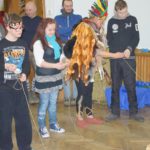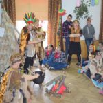 Tegoroczna zabawa karnawałowa jak zawsze zaskoczyła wszystkich niesamowitą inwencją i humorem. Zainscenizowana na indiańską wioskę świetlica stała się miejscem wspaniałej, niepowtarzalnej radości. Nauczyciele świetnie wcielili się w role indiańskich wojowników. Także dzieci przygotowały się do imprezy bardzo starannie – wymyśliły stroje, wykonały odpowiednie stylizacje i maski. Barwna wioska, widowiskowe stroje, wspaniała muzyka sprawiły, ze każdy mógł przez chwilę poczuć się jak na prawdziwym Dzikim Zachodzie. Uczestnicy nie tylko poznawali codzienne życie Indian, ale pokonywali też trudności i zdobywali sprawności. Nie każdy odważył się polować na bizona i węże, ale wszyscy świetnie się bawili w tak wyjątkowym klimacie. Raz po raz świetlicę wypełniało gromkie HOUK! Zabawa została uwieńczona wspólnym tańcem deszczu i … jak przystało na współczesne czasy – dyskoteką!