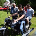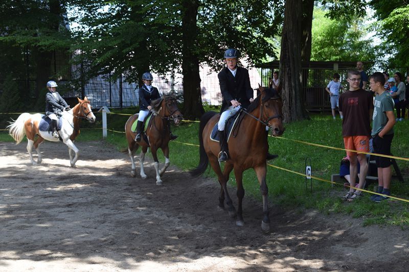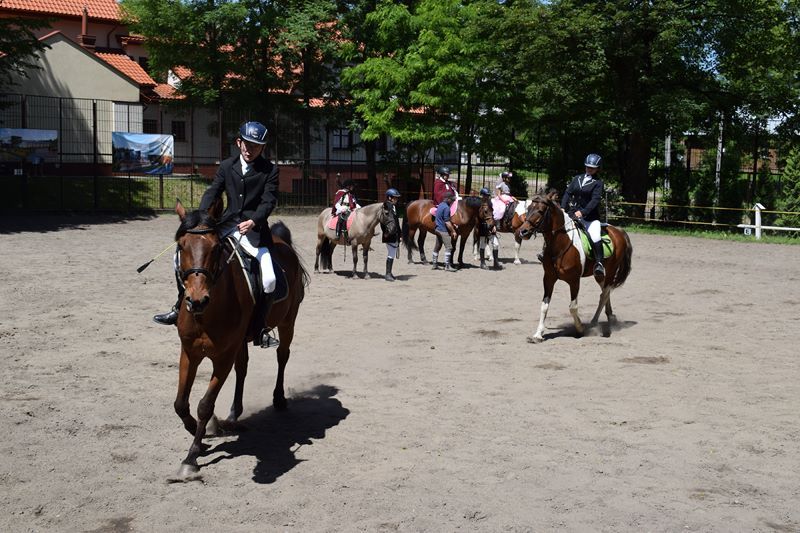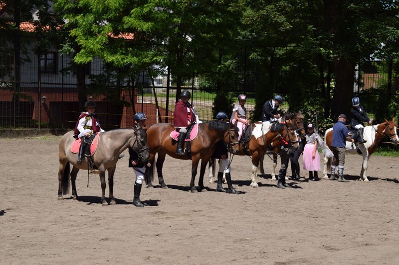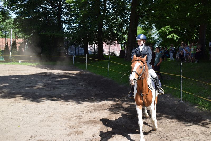 Wiele emocji wzbudziła także motocyklowa niespodzianka. Każdy miał niesamowitą okazję zakosztowania radości płynącej z przejażdżki pięknym ścigaczem. Wychowankowie z rodzicami ochoczo uczestniczyli w atrakcyjnych grach i zabawach ruchowych oraz w happeningu malarskim. Chwile wytchnienia goście spędzili w specjalnie przygotowanej kawiarence. Smaczne dania oferował też oczywiście grill. Całości wrażeń dopełniały barwne pokazy jazdy konnej w wykonaniu naszych uczniów.