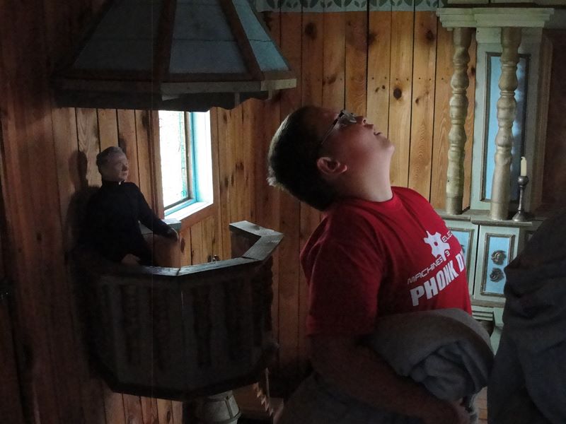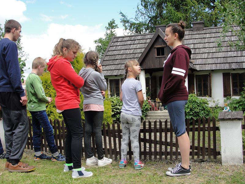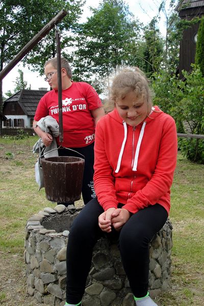 Kolejne wrota przeniosły wszystkich o kilkaset lat wstecz. Uczniowie ze zdumieniem doświadczali nieznanej im kultury. Z otwartymi buziami wpatrywali się w miniaturową wieś z „Chłopów” Reymonta. Podziwiali wiejską zagrodą z chatą pokrytą strzechą, gospodarzy karmiących zwierzęta ,ogrody pełne ziół i kwiatów . Oglądali też młyn, gospodę, kościół, dwór, starą studnię z żurawiem, a nawet synagogę. Dbałość o szczegóły wykonania domostw, ubrań i sprzętów zachwyciła wszystkich przechadzających się po miniaturowych wiejskich dróżkach.