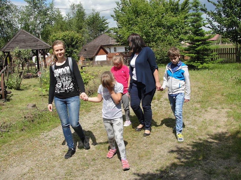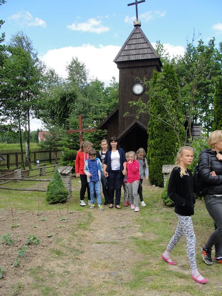 Korzystając z pięknej pogody uczniowie najmłodszych klas 1a i 3a wybrali się do „Bajkowego ogrodu” oraz skansenu w Lipinach. Dawna wieś w miniaturze przeniosła wędrowców w zupełnie inną rzeczywistość. Tuż po przyjeździe grupa dotarła do niezwykłego miejsca, gdzie wśród gęstej zieleni przebywało mnóstwo bajkowych postaci. Była Królewna Śnieżka otoczona wianuszkiem krasnoludków i oczywiście jej zła macocha. Był Czerwony Kapturek ukrywający się przed wilkiem czającym się wśród zarośli. Był zamek z uwięzioną w wieży Śpiąca Królewną.