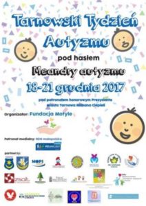 W dniach od 18 – 2 grudnia 2017 w Tarnowie odbywać się będzie wydarzenie pt.. „Tarnowski Tydzień Autyzmu”. Patronatem honorowym wydarzenie objął Prezydent Tarnowa Roman Ciepiela. Organizatorem jest Fundacja MOTYLE. Szczegółowy program znajduje się na zamieszczonym plakacie: PROGRAM_tydzien_autyzmu (1)